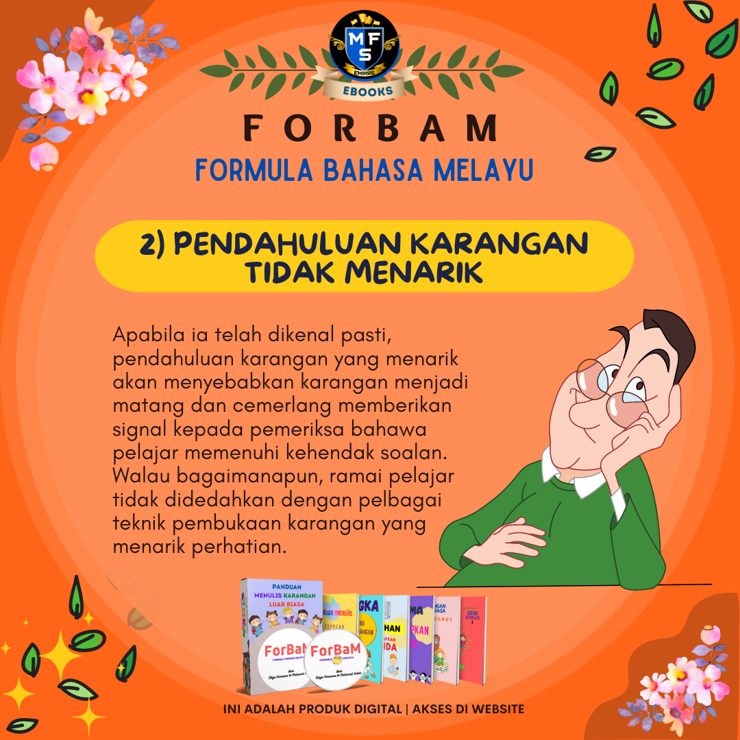 Forbam merupakah satu-satunya panduan yang direka khas untuk membantu pelajar mengenal pasti bentuk soalan karangan Bahasa Melayu, dapat mengetahui tema, kehendak soalan dan penyoalan KBAT dalam soalan karangan dan mengetahui formula untuk membina karangan cemerlang.