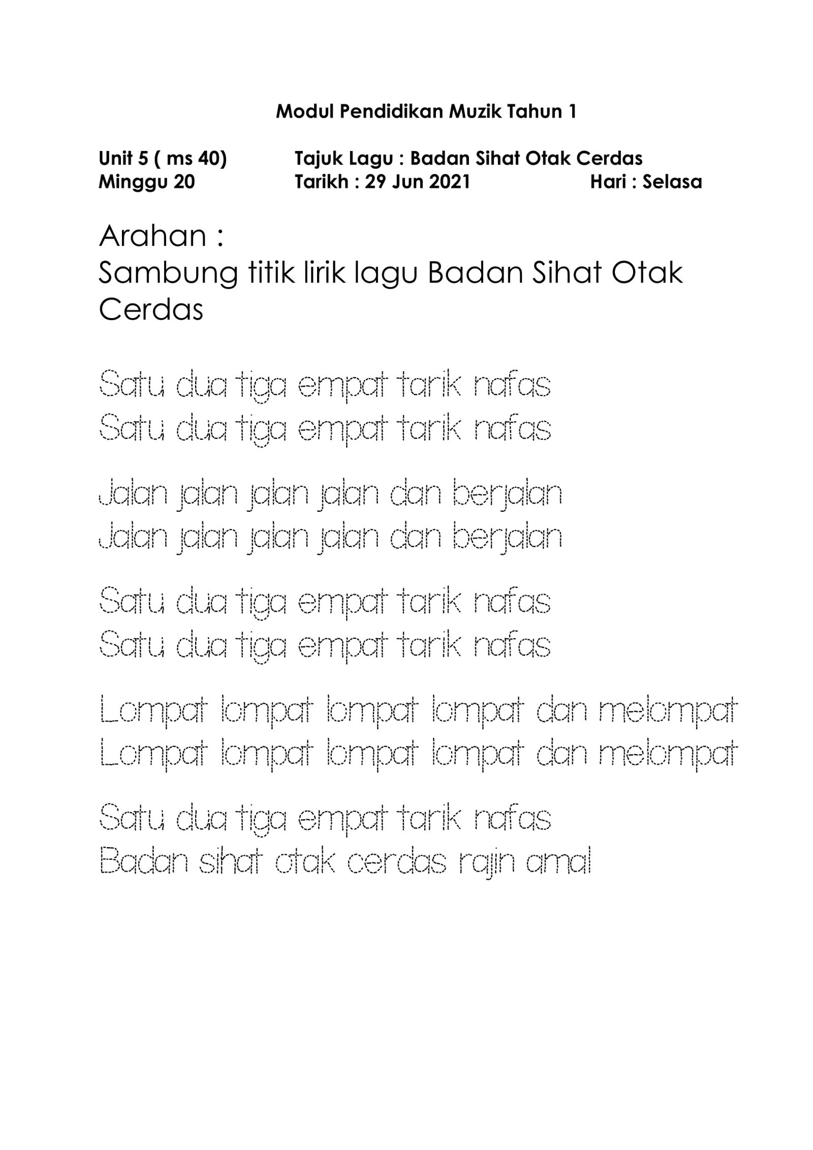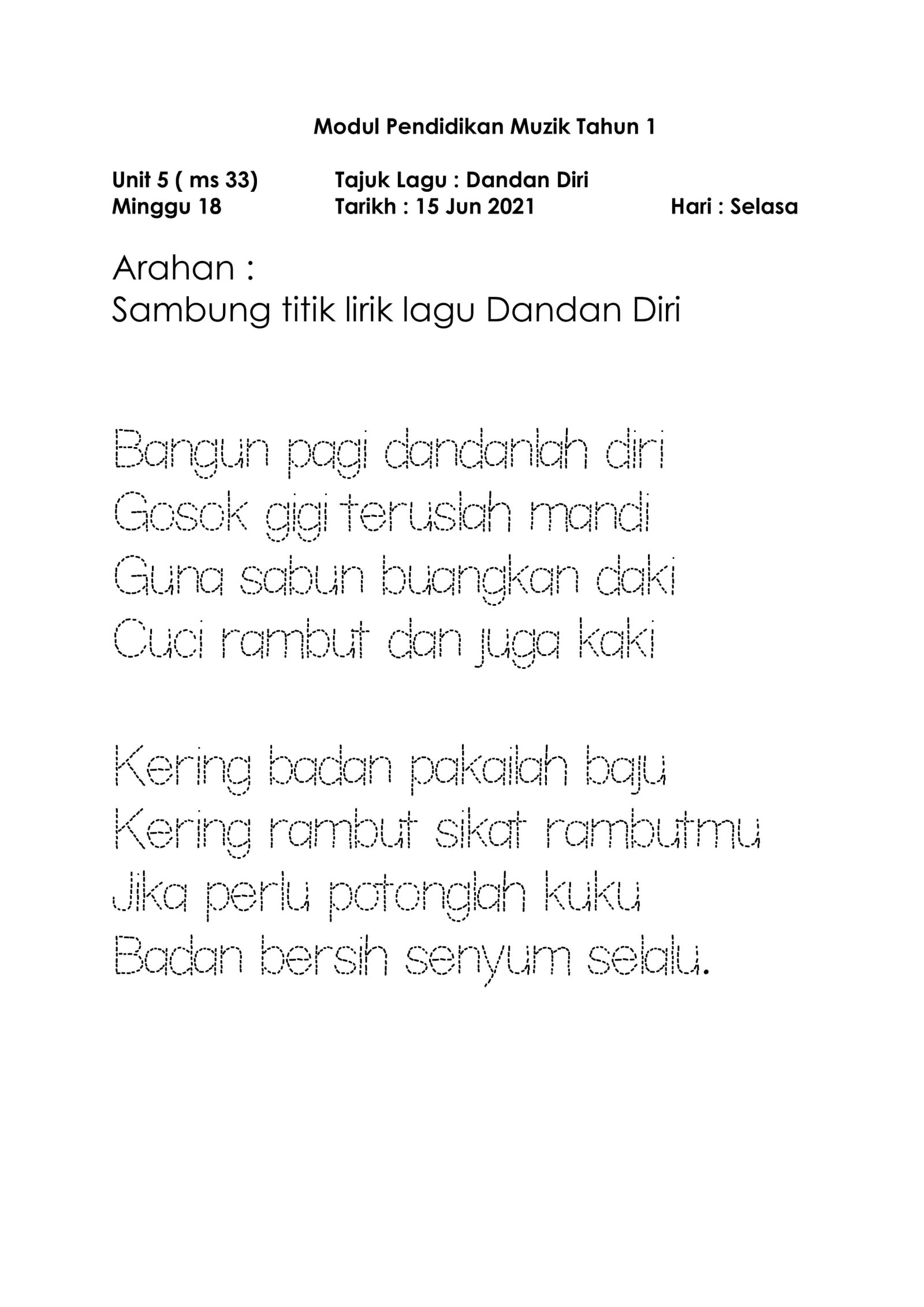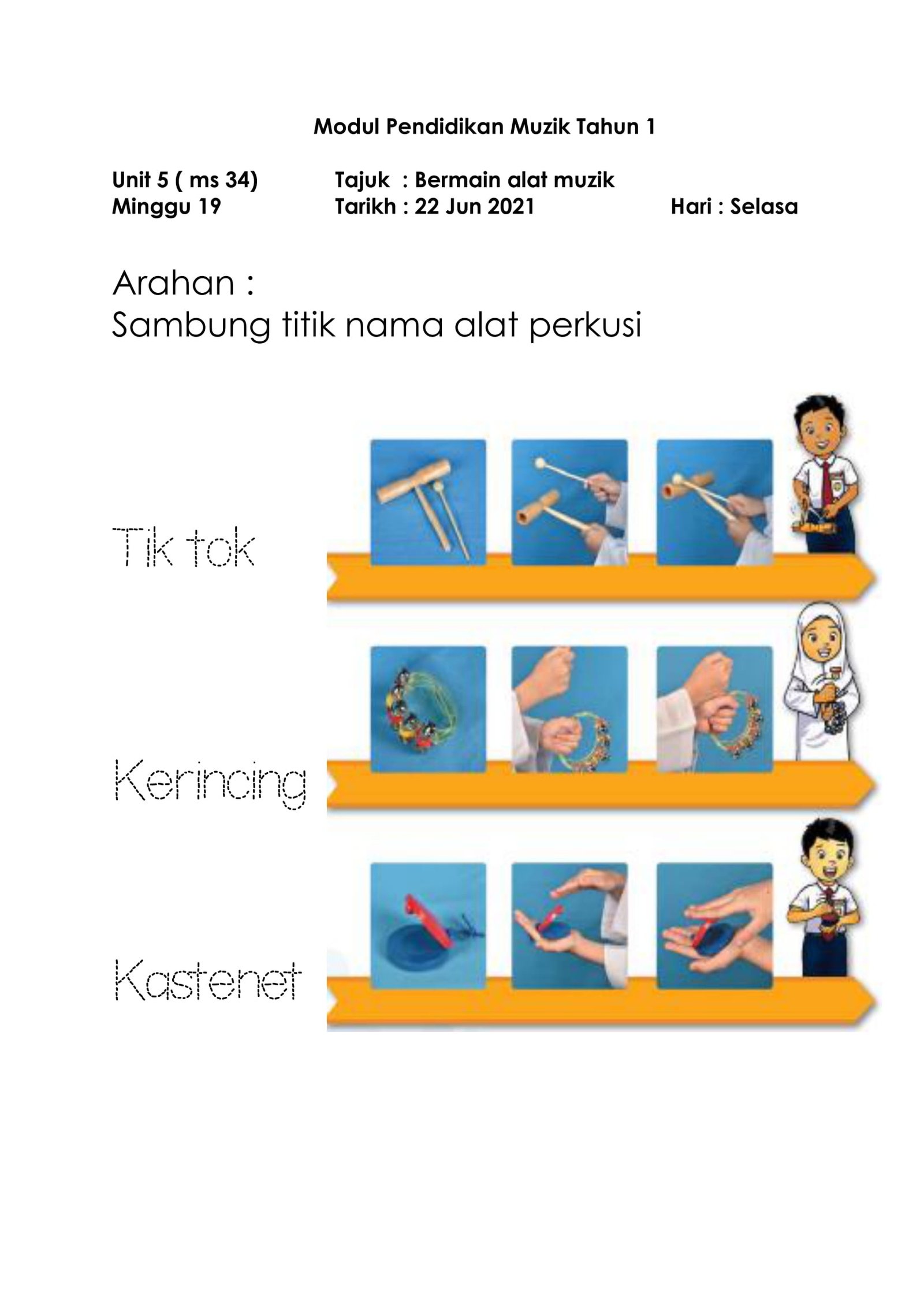 Oleh: Cikgu Mohd Ali  Bahan: Pendidikan Muzik    Bilik Darjah/Tingkatan: Tahun 1