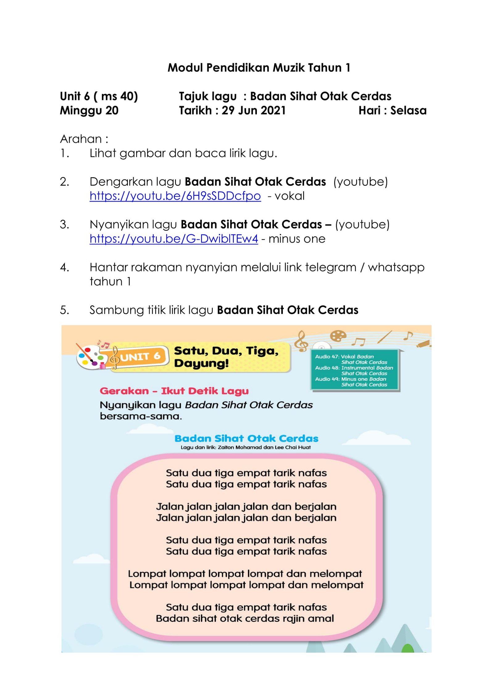 Lagu Badan Sihat Otak Cerdas (Minus One)