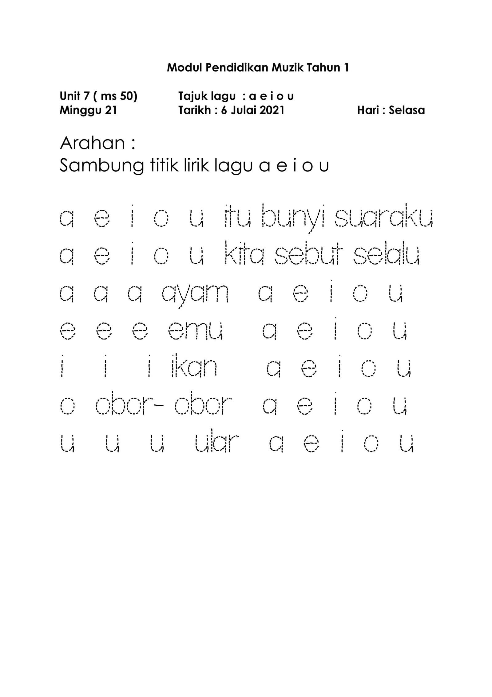 Lagu : a e i o u (Vokal)