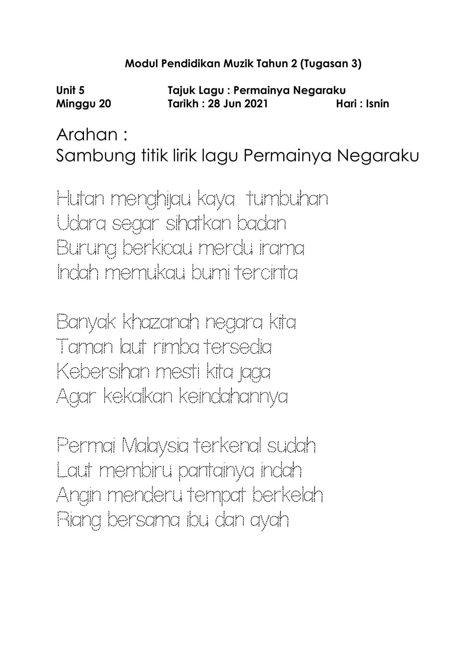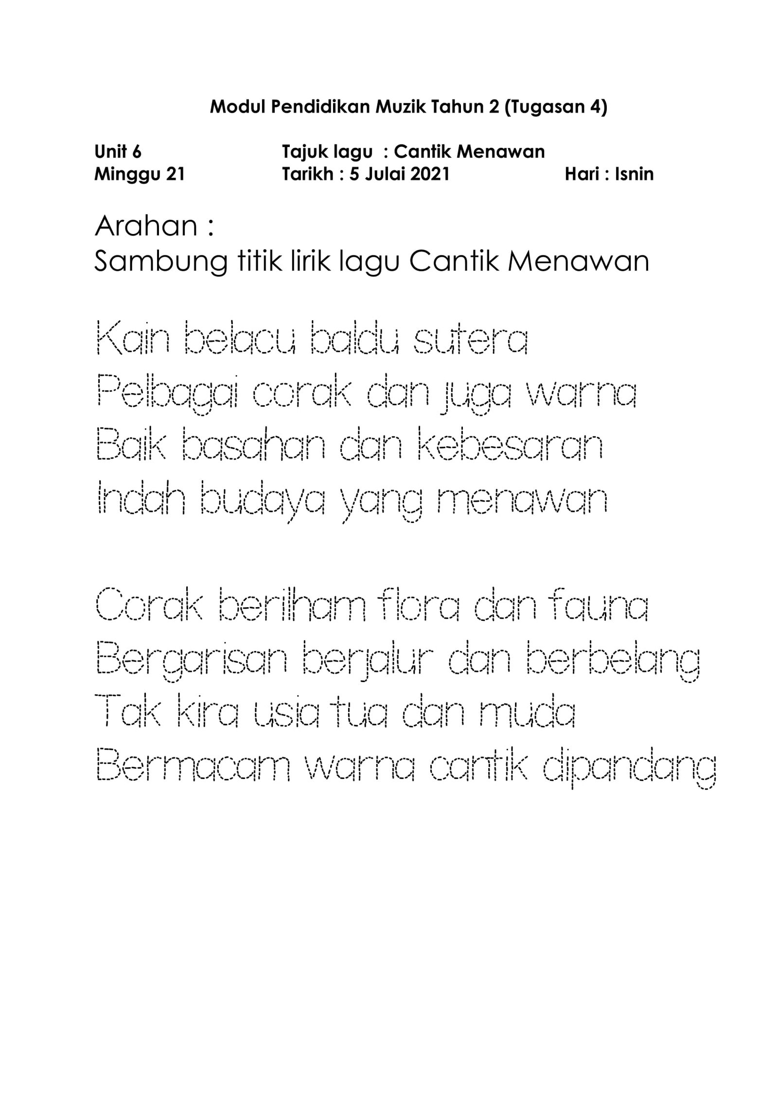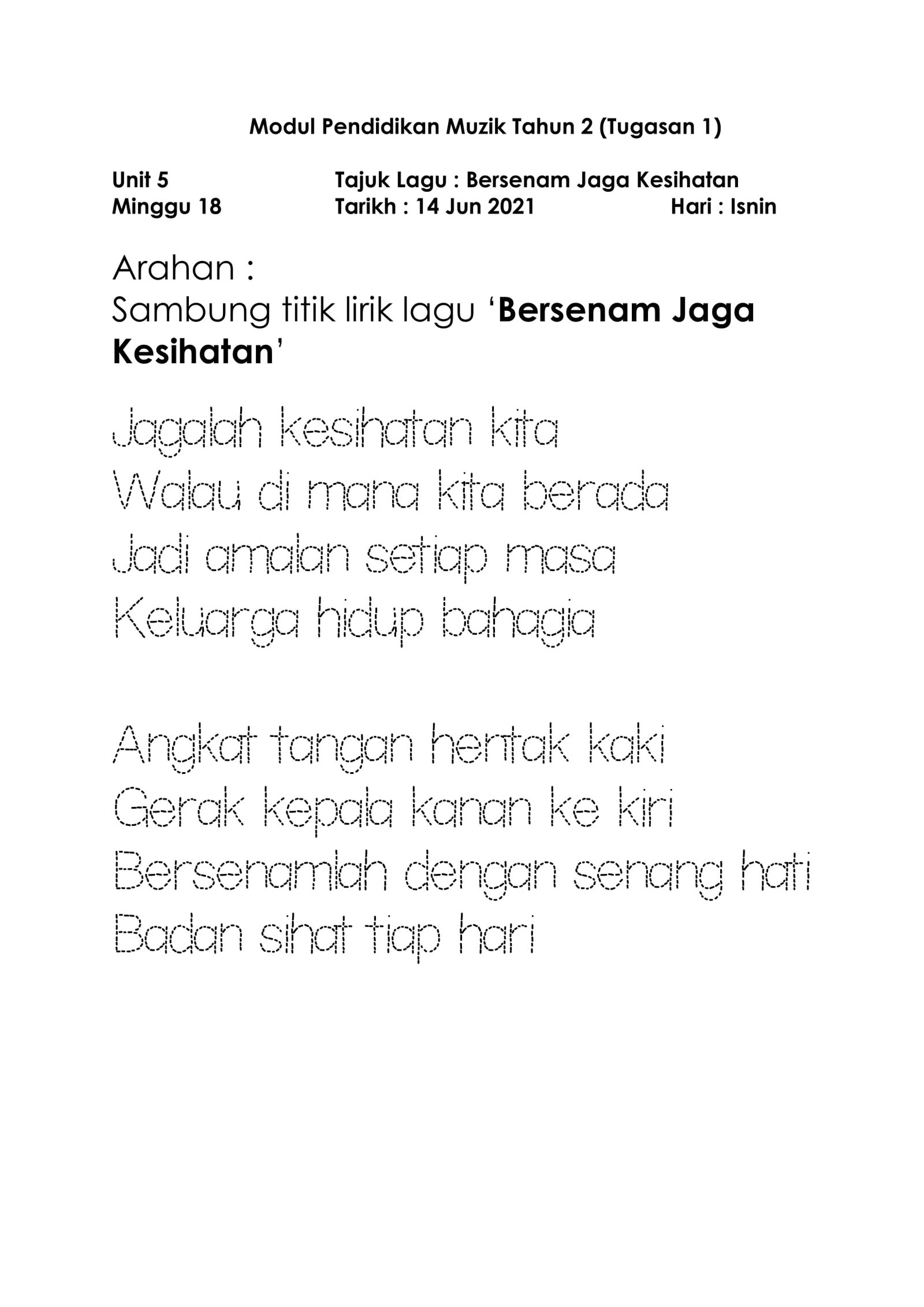 Bahan Pendidikan Muzik PDPR untuk Tahun 2 Semoga bahan ini dapat membantu cikgu-cikgu yg mengajar pendidikan muzik sebagai panduan dan bahan sokongan. Cikgu-cikgu edit lah ikut kesesuaian sekolah masing-masing.
