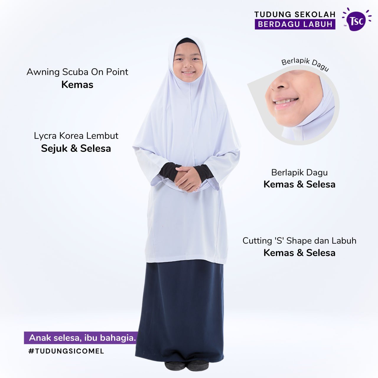 Itulah rasa yang ramai ibu kongsi bila anak mereka pakai Tudung Sekolah Berdagu Labuh dari TudungSiComel 💜 Tudung sekolah ini bukan sekadar cantik, tetapi direka khas untuk memberi keselesaan sebenar kepada anak-anak sepanjang hari di sekolah.