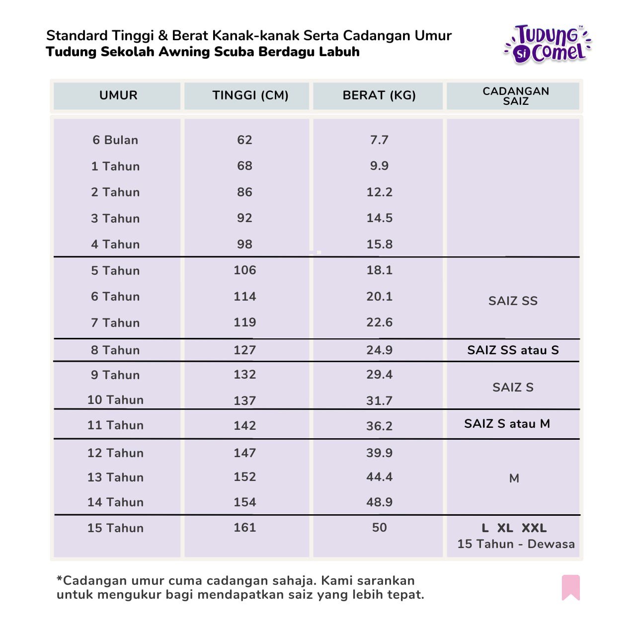 ✅ Pilihan saiz lengkap dari SS hingga XXL sesuai untuk umur 5 tahun hingga remaja.