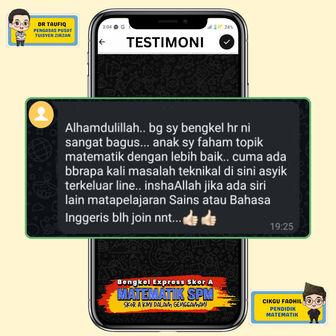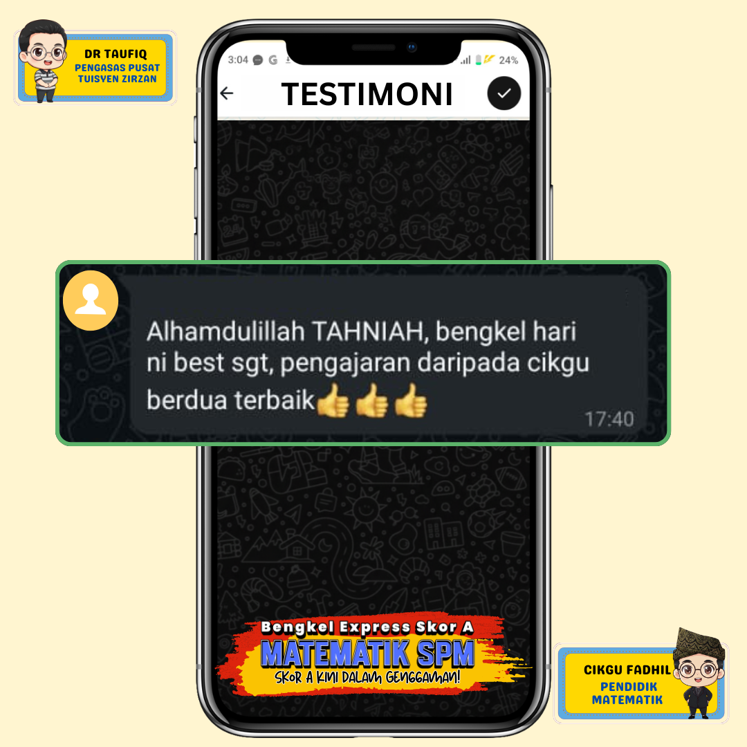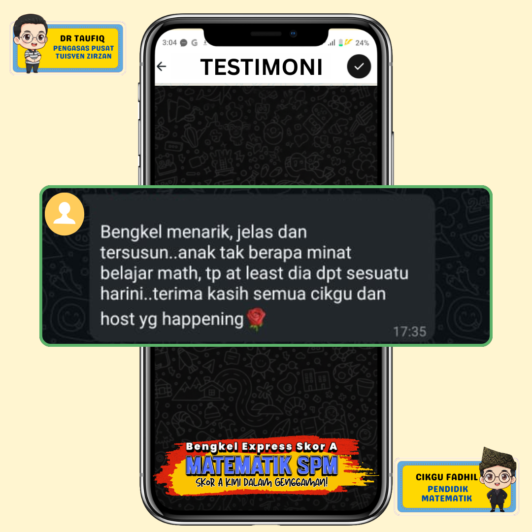 Bengkel Matematik SPM review daripada pelajar yang berjaya kuasai topik peperiksaan.