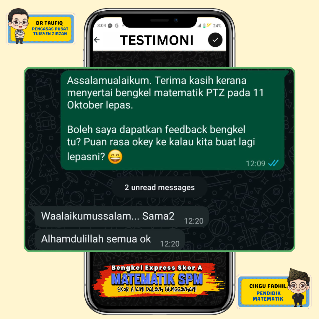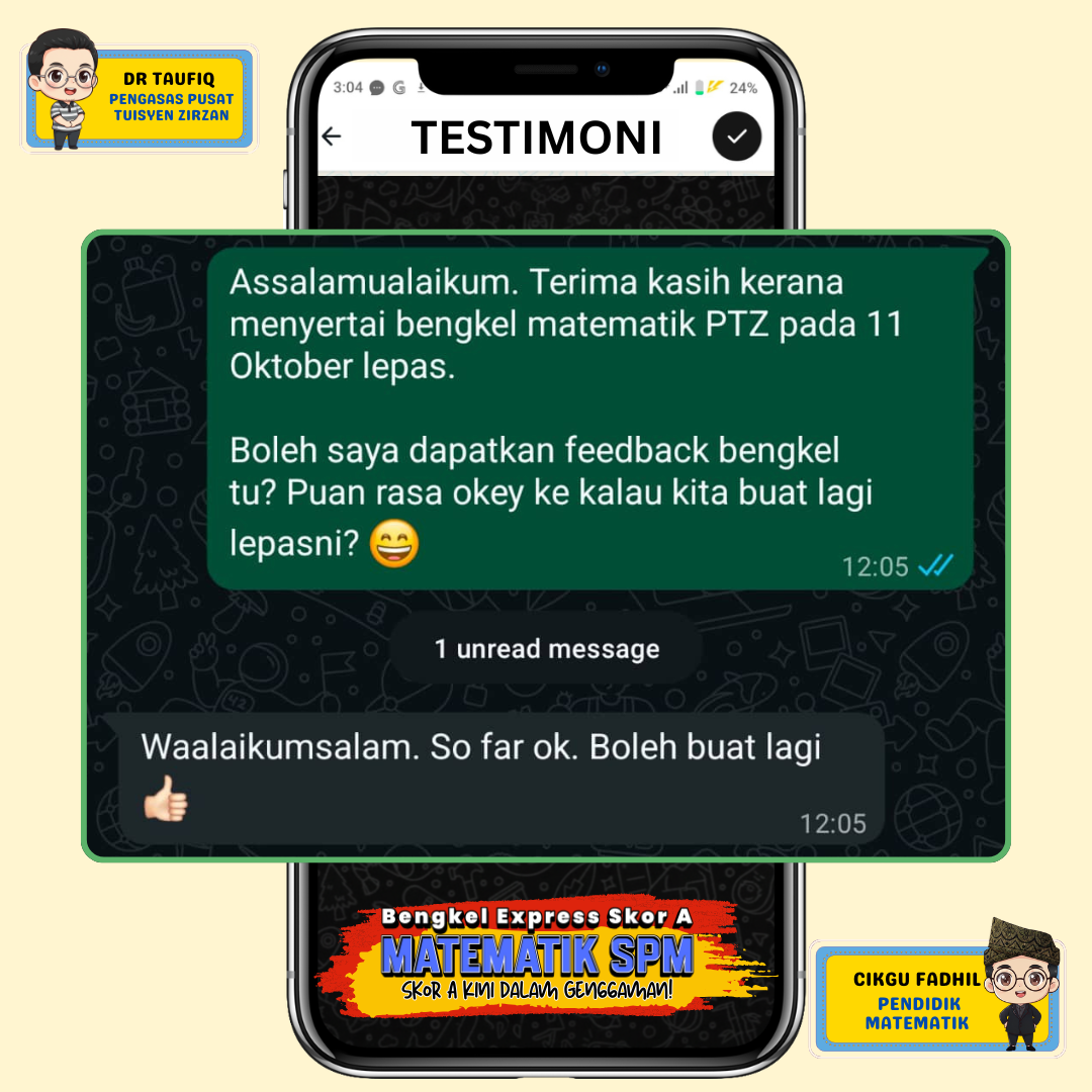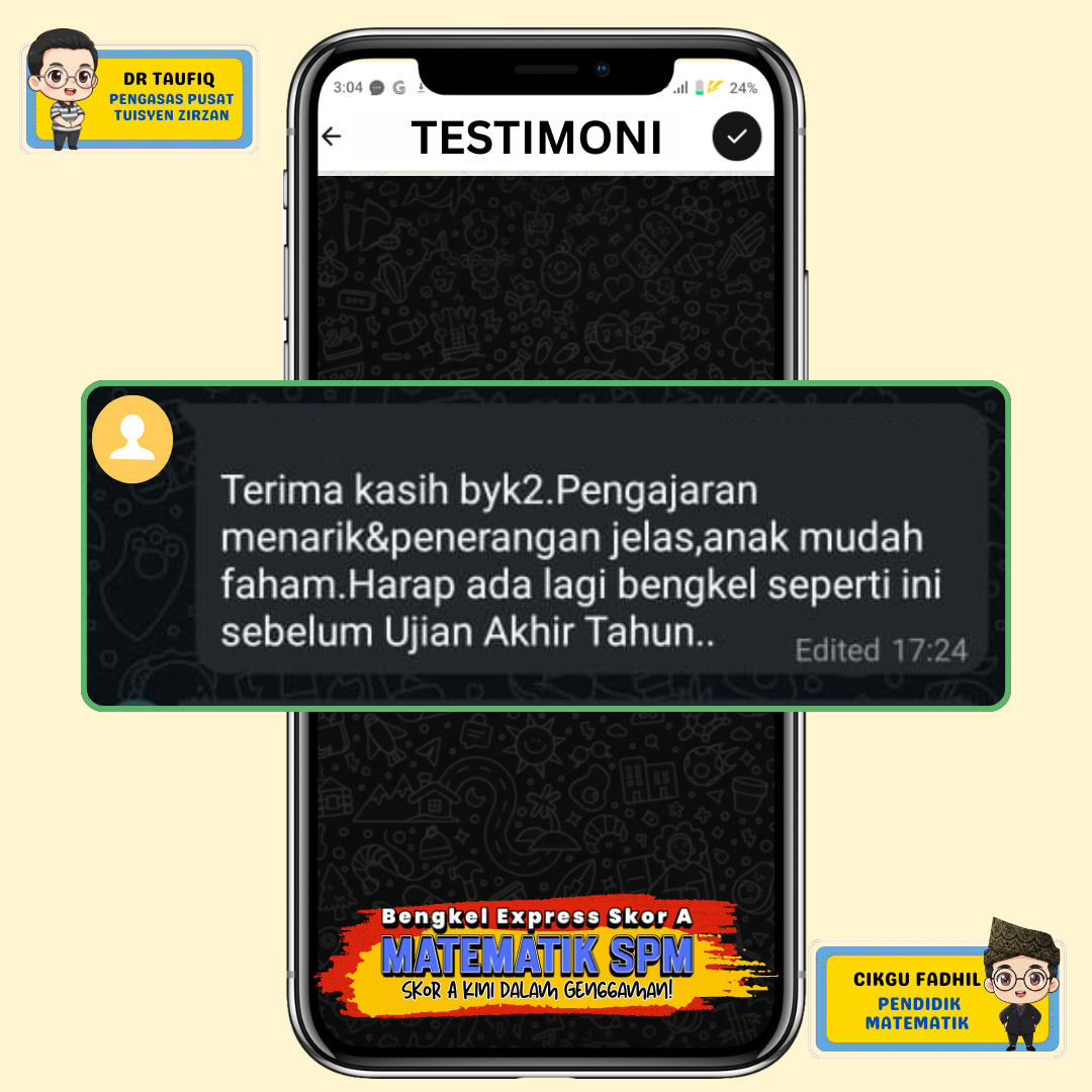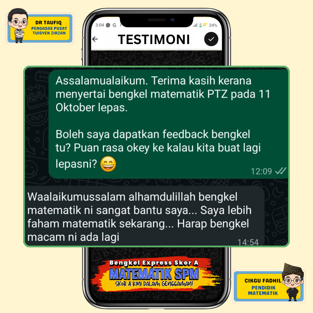 Bengkel Matematik SPM review daripada pelajar yang berjaya kuasai topik peperiksaan.