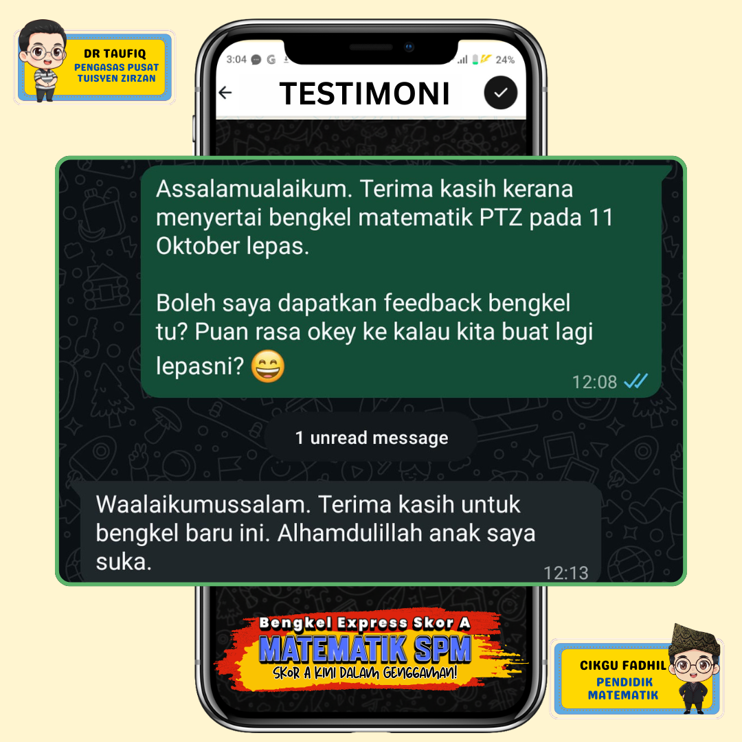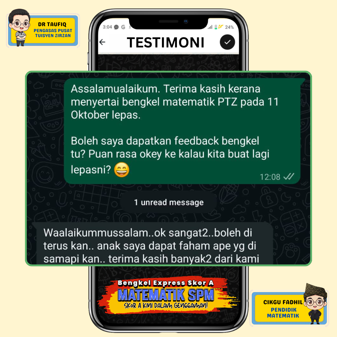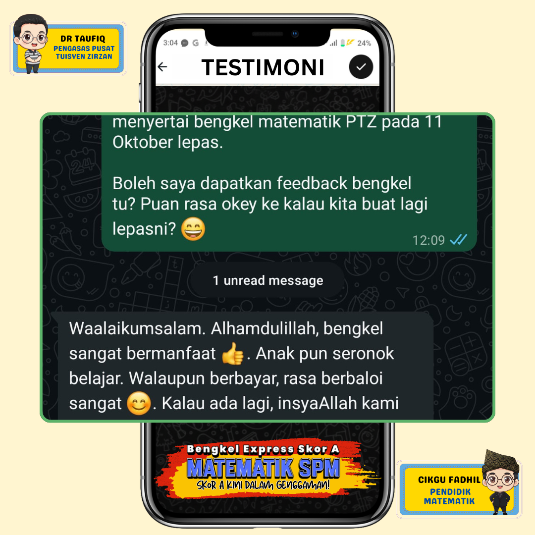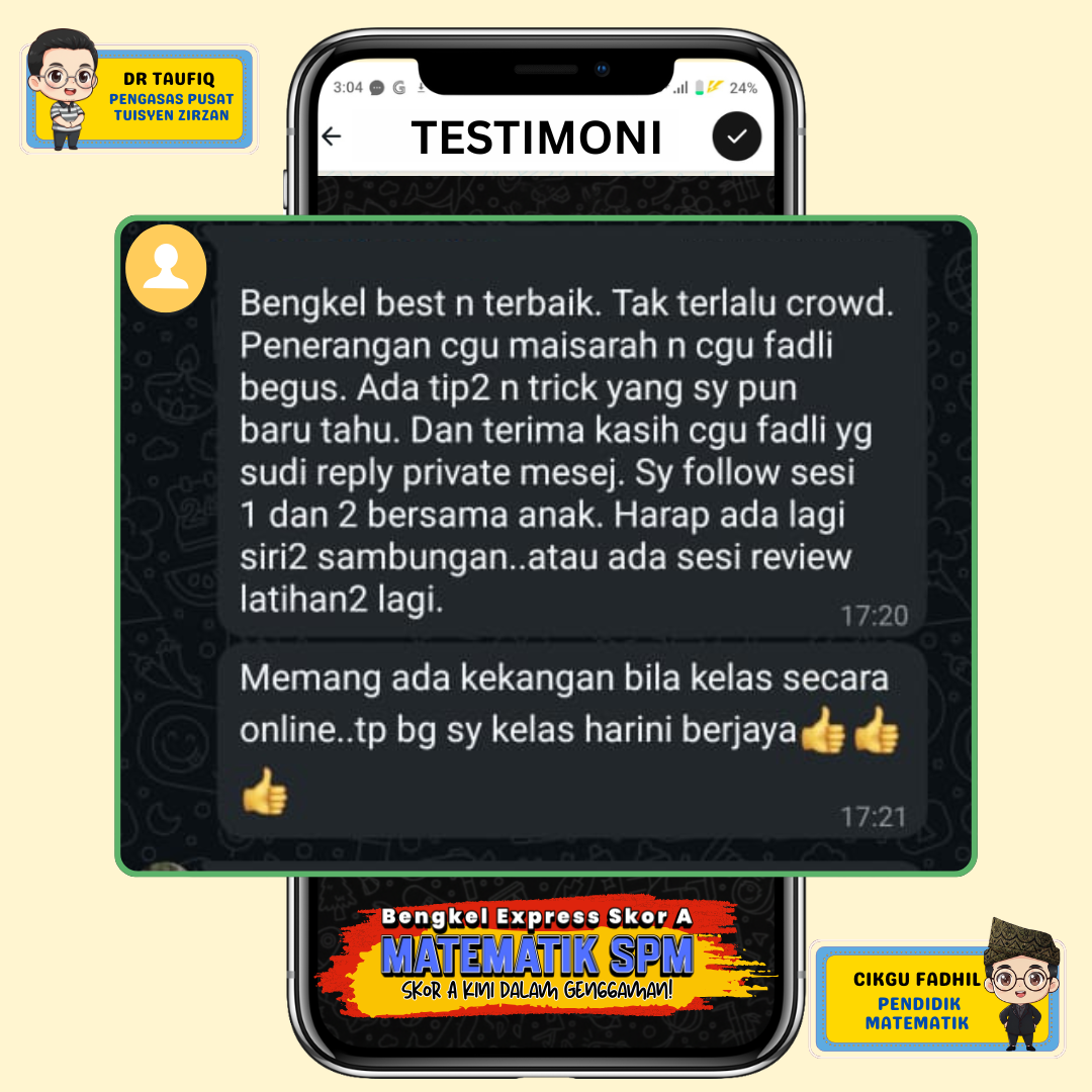 Bengkel Matematik SPM review daripada ibu bapa yang melihat peningkatan anak.