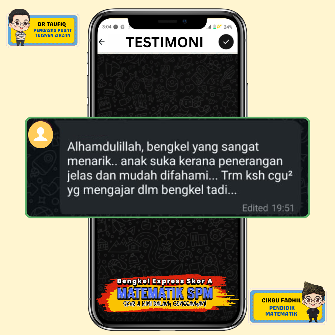 • Testimoni: ā€œMarkah saya naik sampai 79!ā€, ā€œAnak saya baru faham cara fikir Matematik!ā€