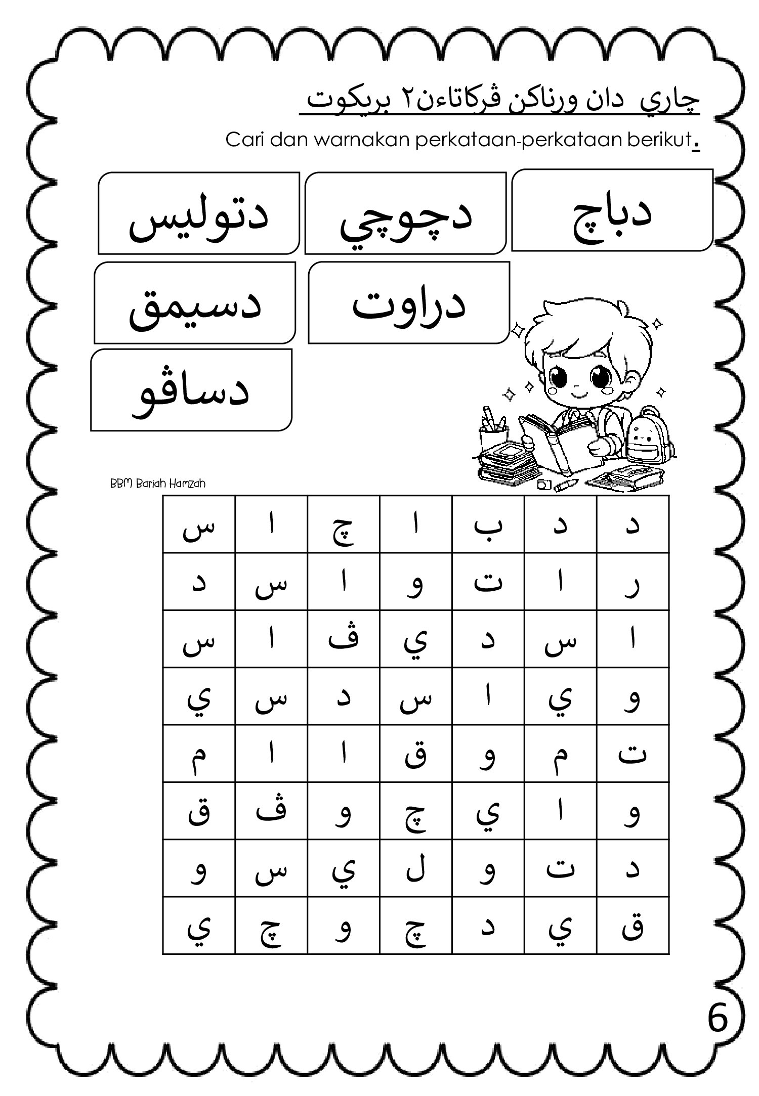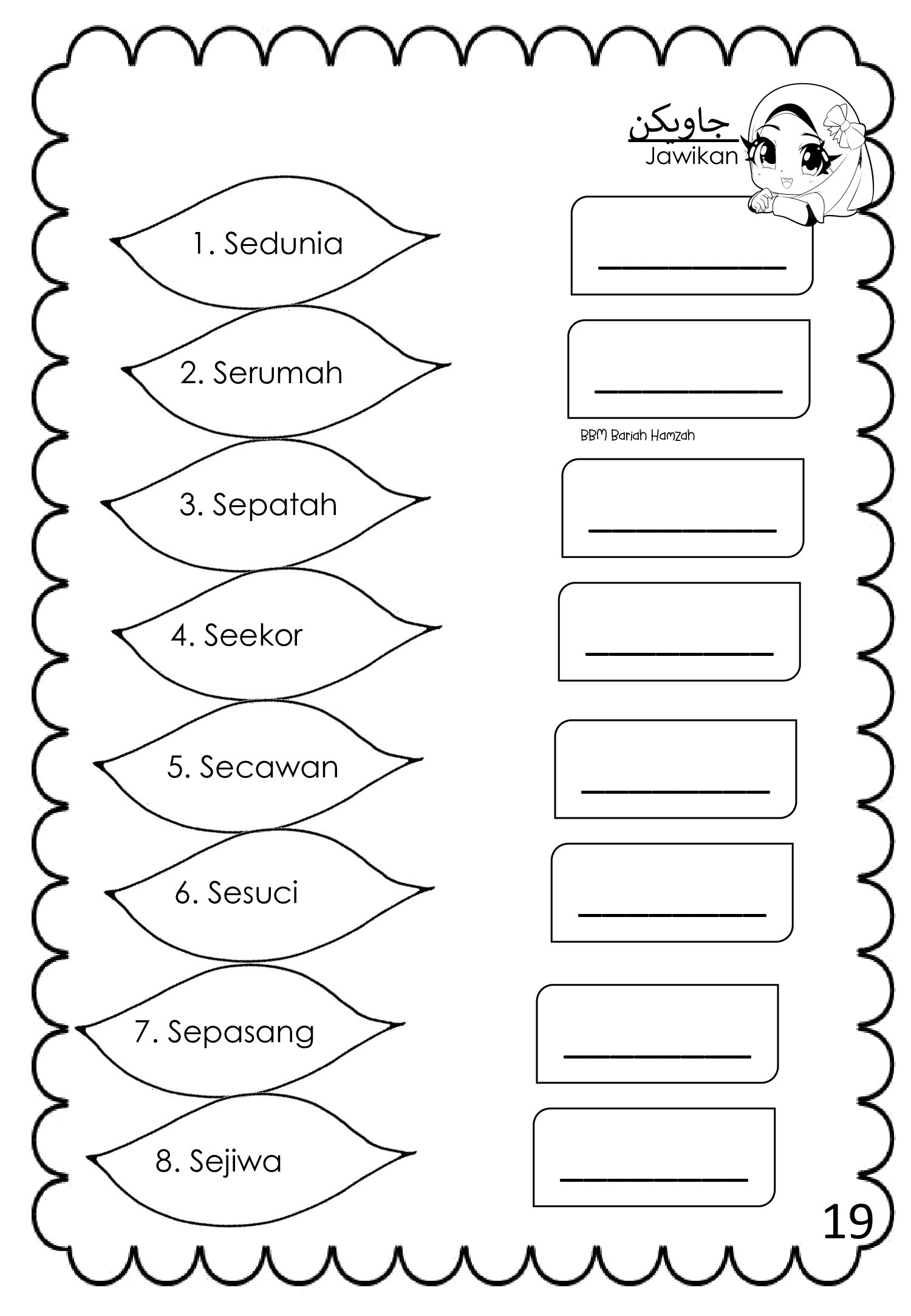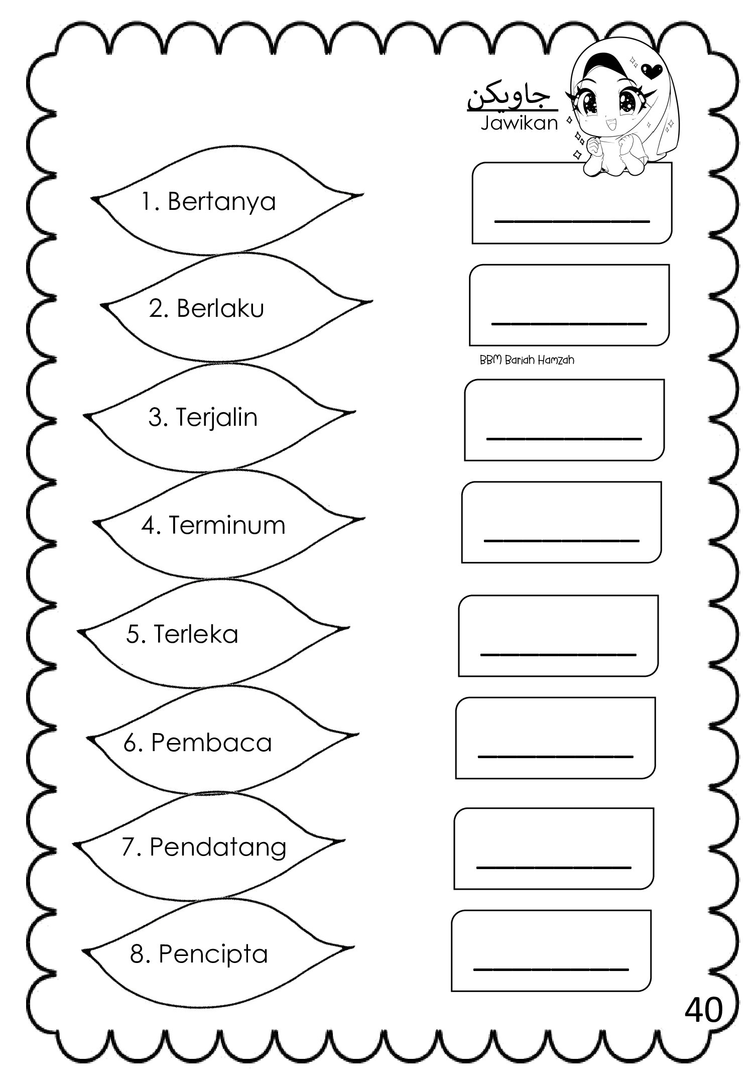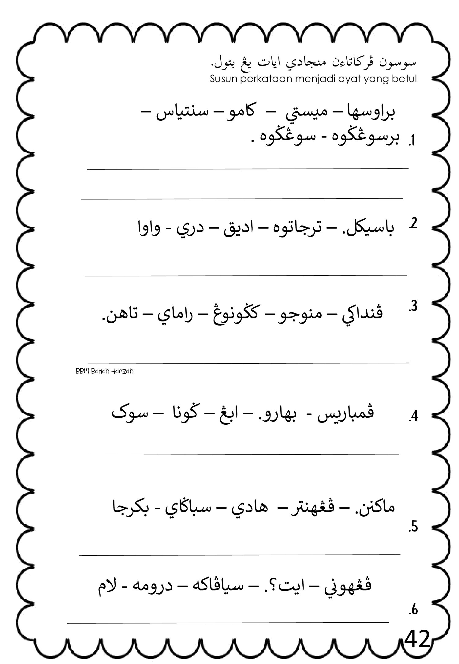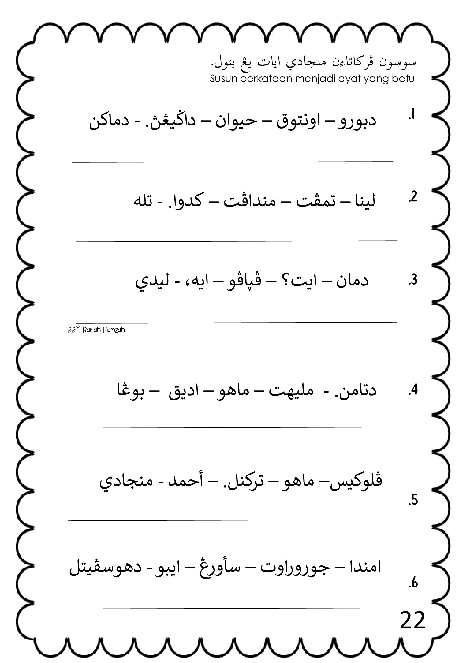 Bahan ini dikongsikan oleh Bariah Hamzah dan disusun khas untuk murid sekolah rendah, termasuk murid tahap awal yang baru belajar Jawi.