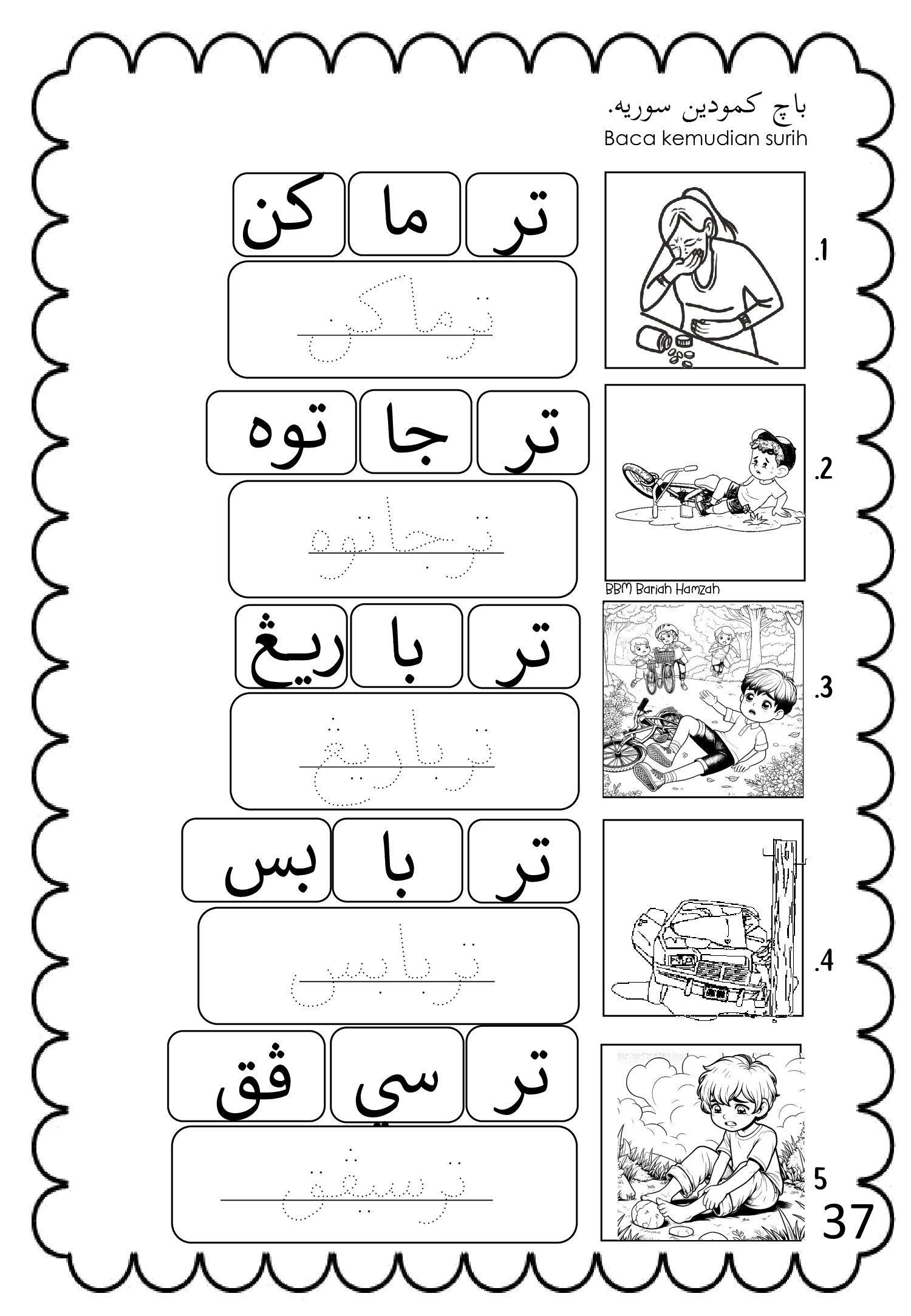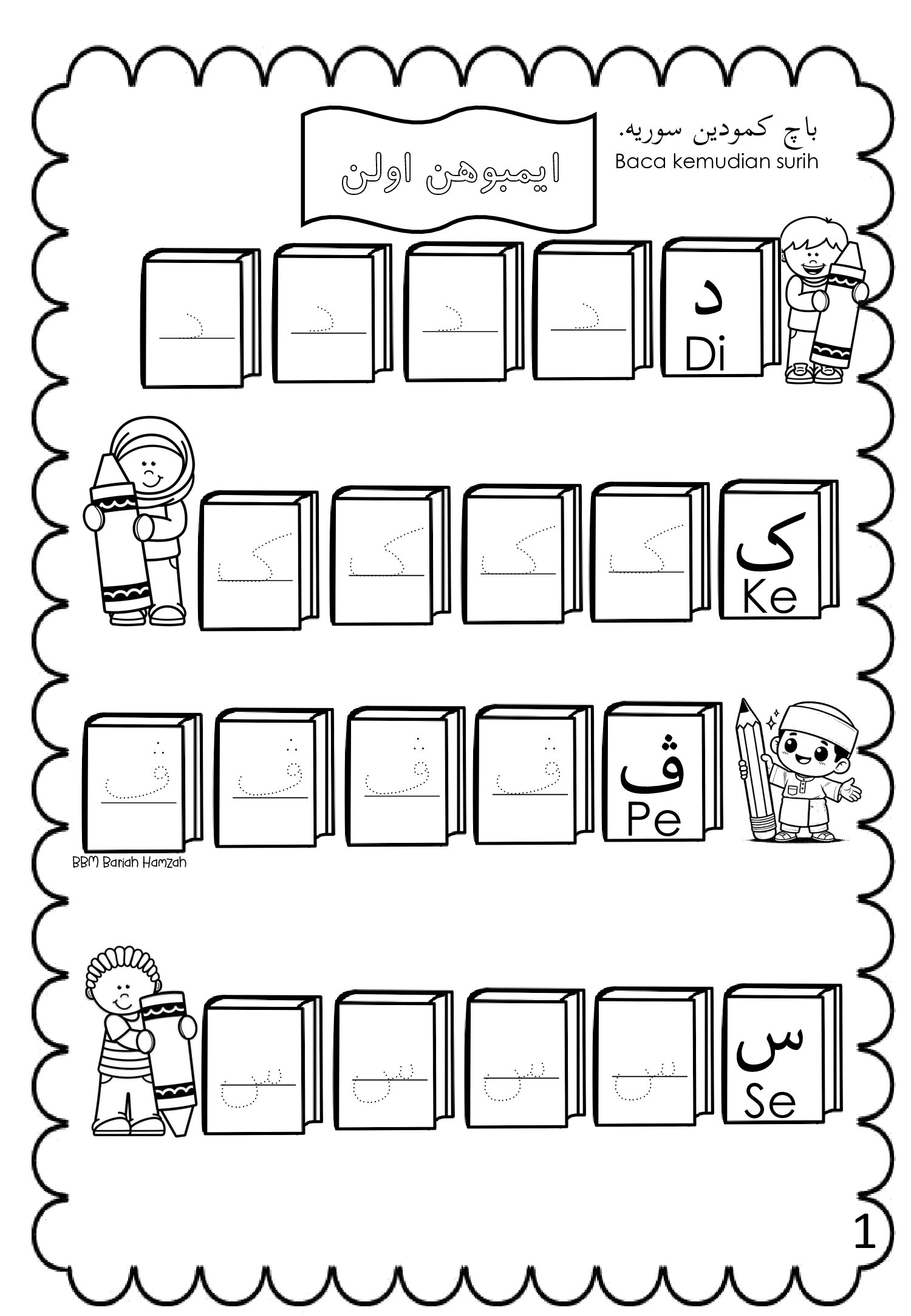 Latihan disusun secara berperingkat bagi membantu murid mengenal, membaca, menulis serta memahami penggunaan imbuhan awalan Jawi dengan lebih mudah dan menyeronokkan.