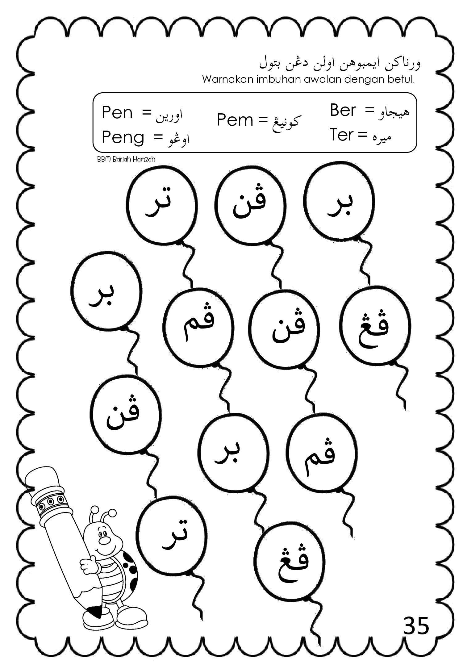 Latihan Imbuhan Awalan Jawi ini merupakan bahan bantu mengajar (BBM) yang sangat sesuai digunakan oleh guru dan ibu bapa bagi membantu murid menguasai imbuhan awalan dalam tulisan Jawi secara berperingkat dan sistematik.