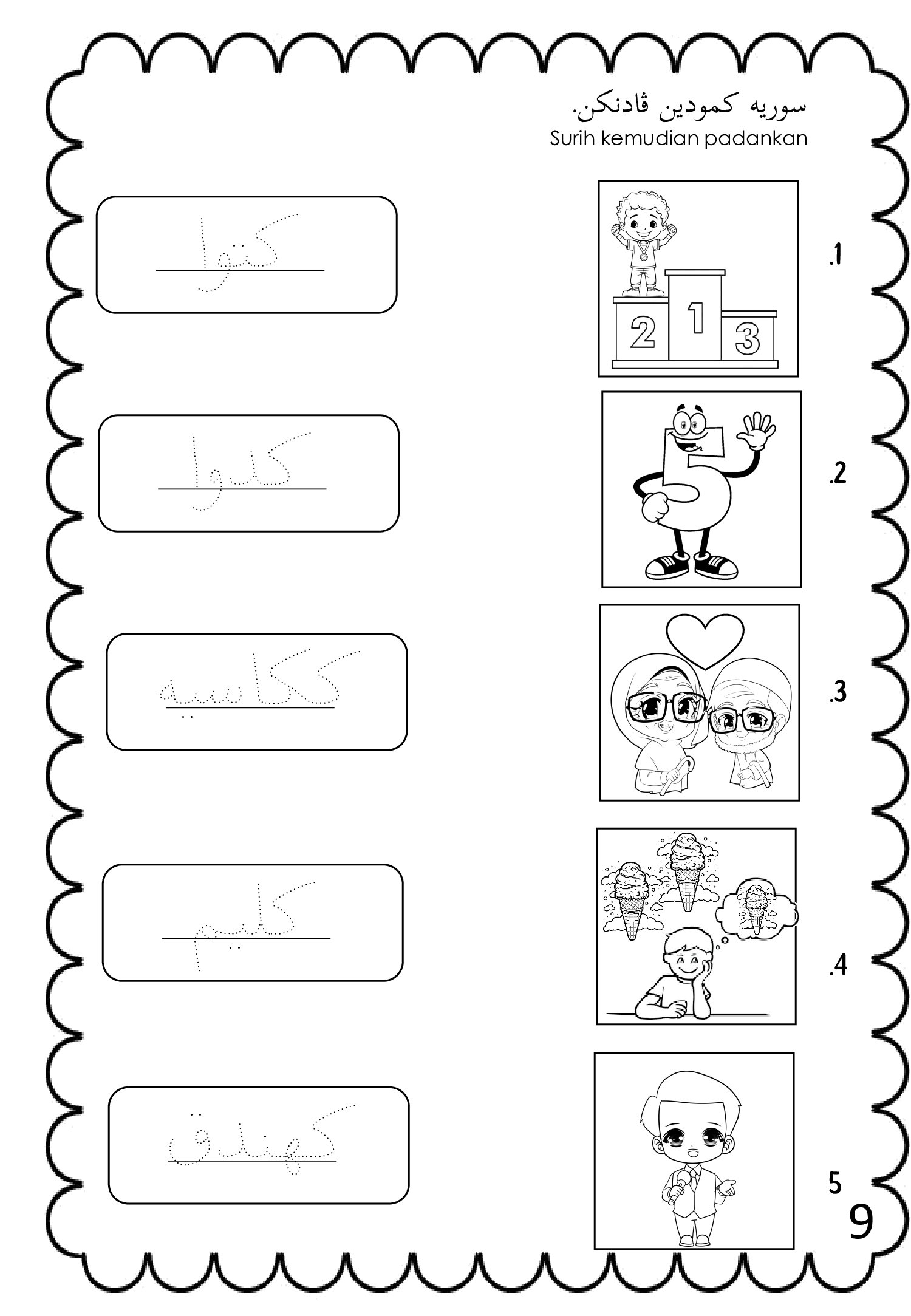 • 👧 Murid prasekolah yang baru diperkenalkan dengan tulisan Jawi