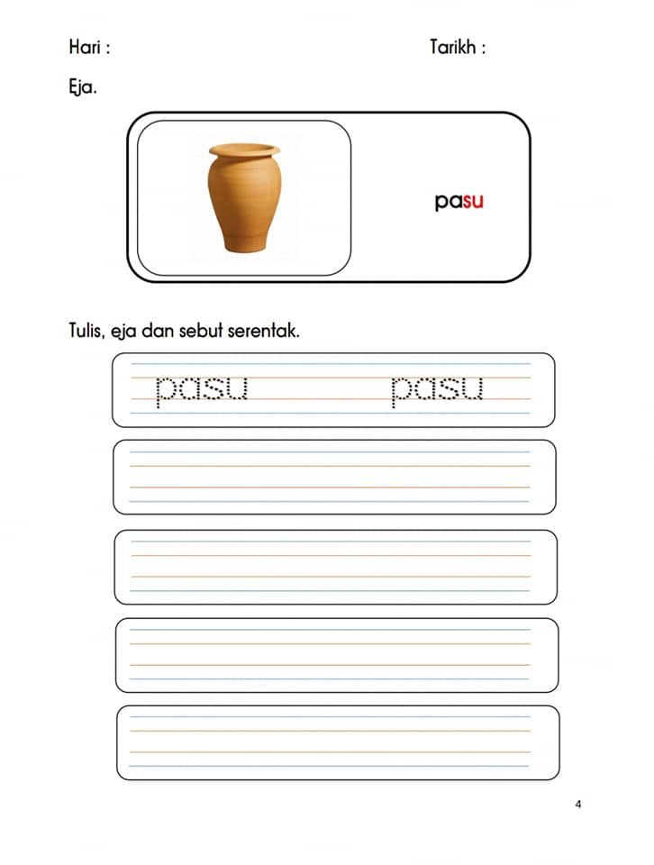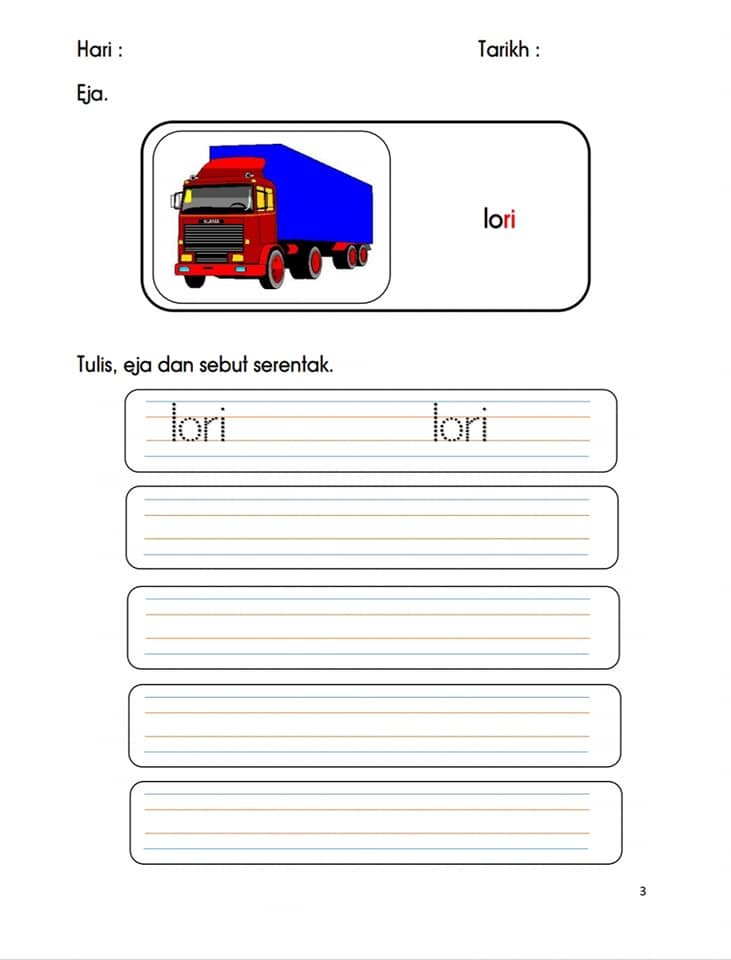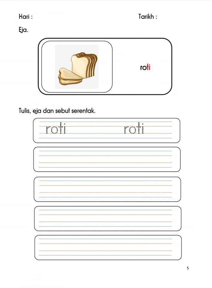 4. TIPS: Jangan ajar dalam masa singkat sekiranya anak masih belum kuasai sesuatu perkataan. Lembaran ini boleh disiapkan dalam jangka masa panjang iaitu SATU HARI. Setiap sesi ajar dalam 10-20 minit sahaja agar fokus anak ini kepada apa yang sedang dipelajari dapat diingati secara kekal.