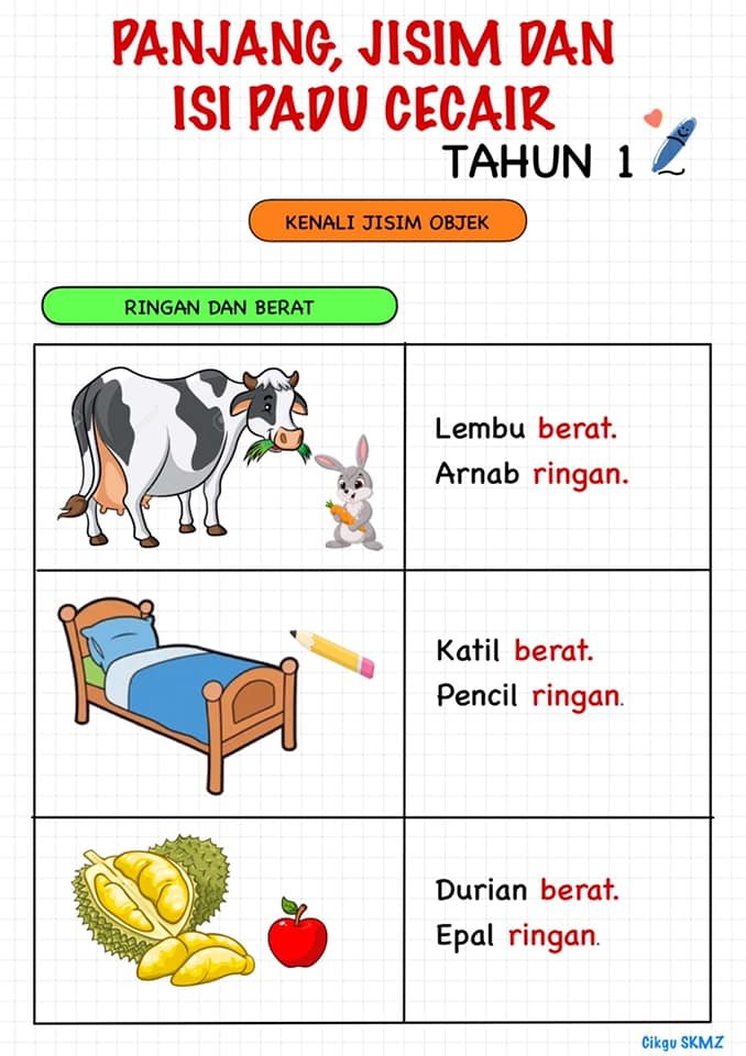 Matematik Tahun 1 Panjang, Jisim dan Isipadu Cecair