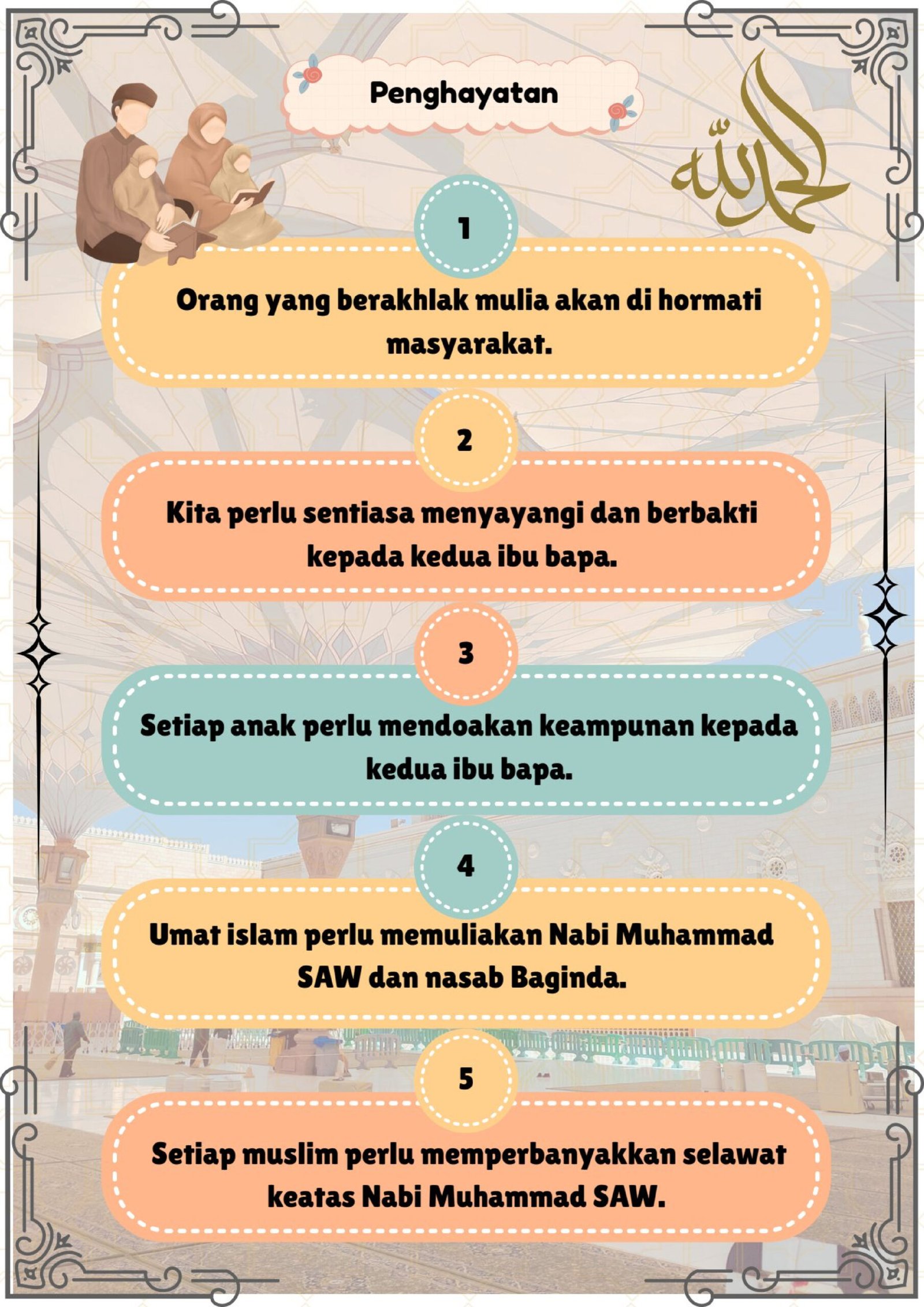 - Mengamalkan akhlak mulia