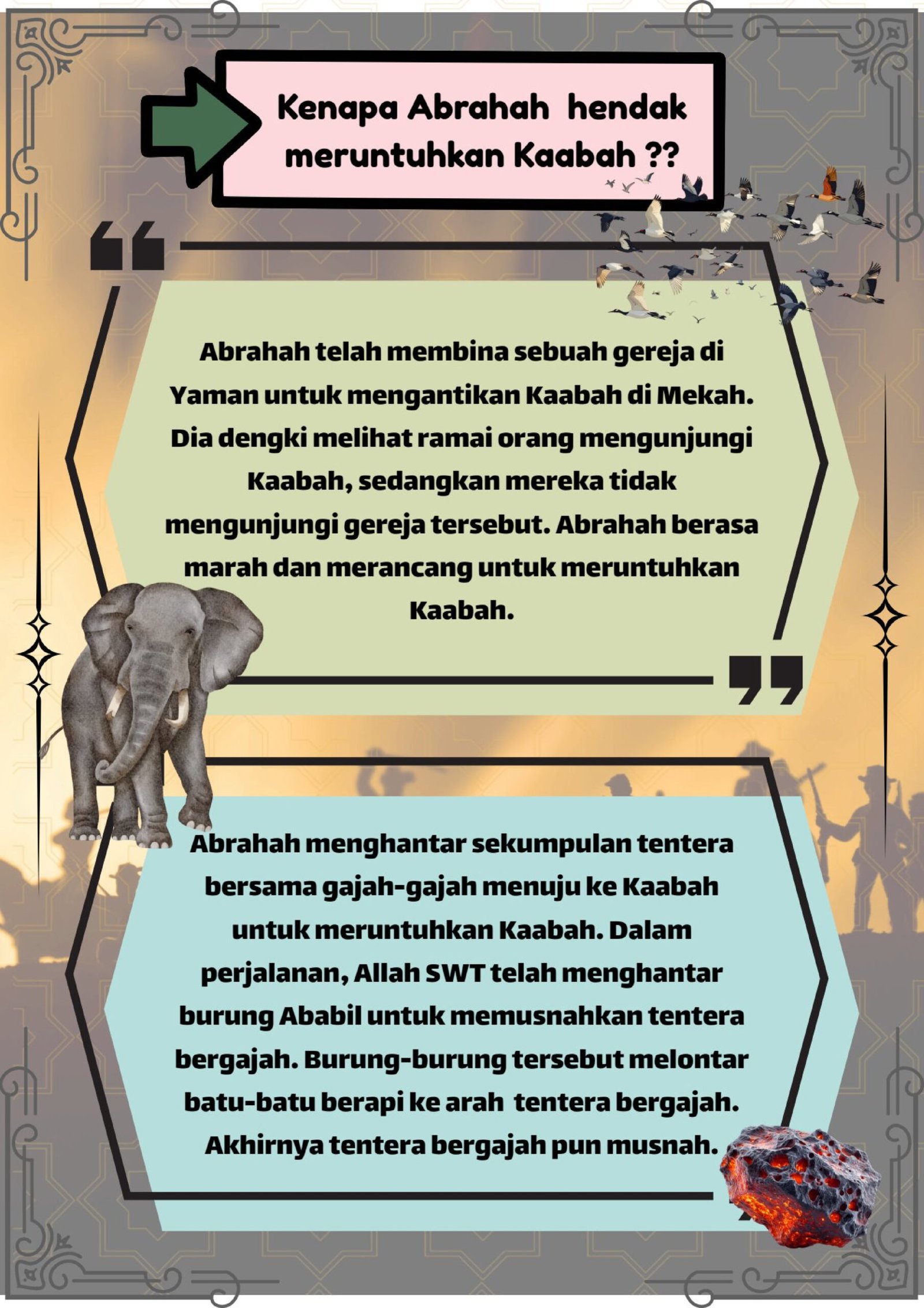 - Abrahah dari Yaman ingin meruntuhkan Kaabah