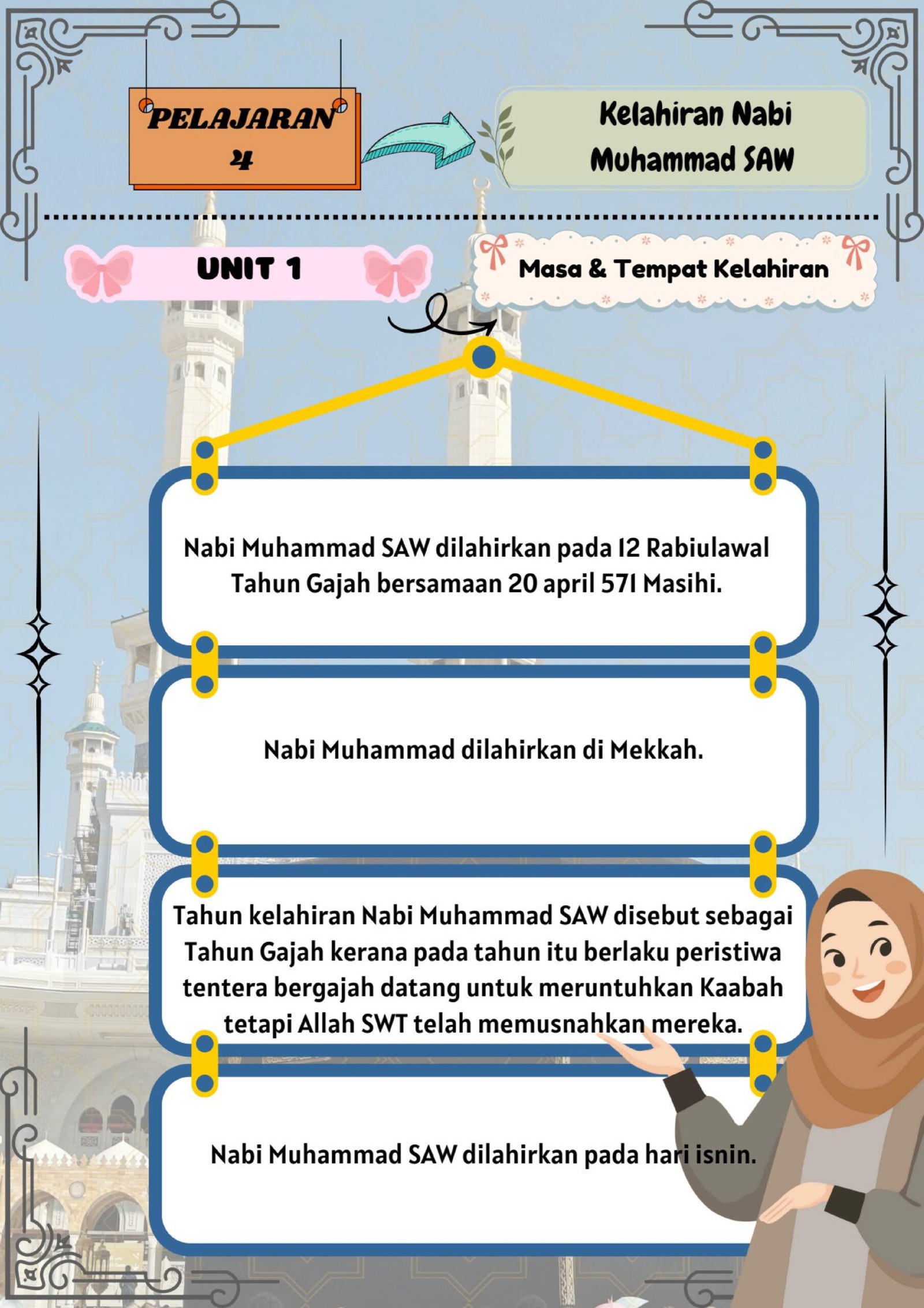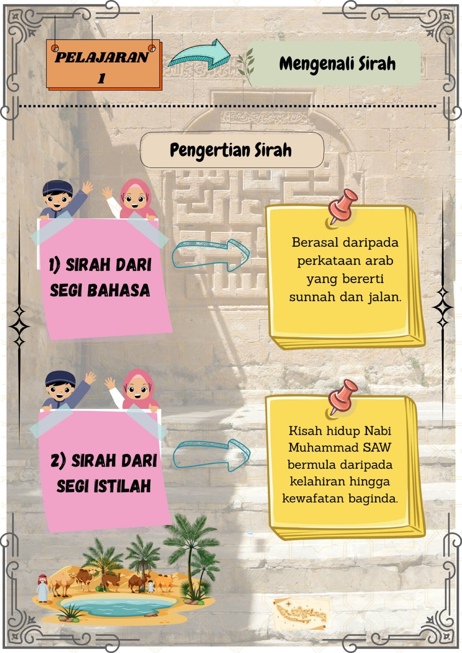 Alhamdulillah, Nota Sirah Tahun 1 kini telah siap sepenuhnya. Disusun secara ringkas, berwarna dan menarik – sesuai untuk membantu murid lebih mudah faham dan mengingati sejarah Nabi Muhammad SAW.