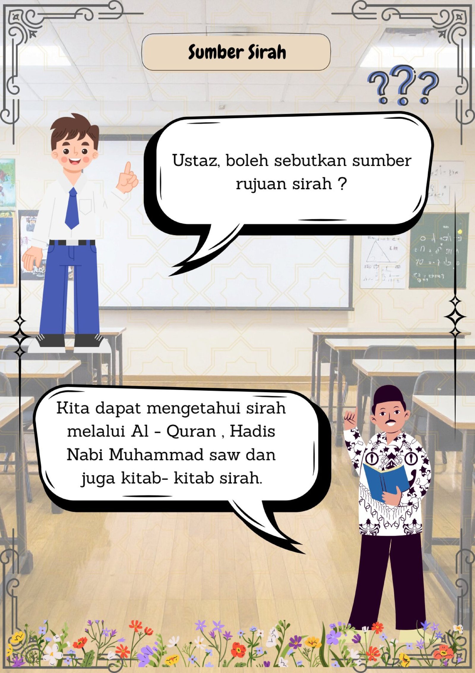 Murid akan didedahkan dengan sumber utama sirah iaitu: