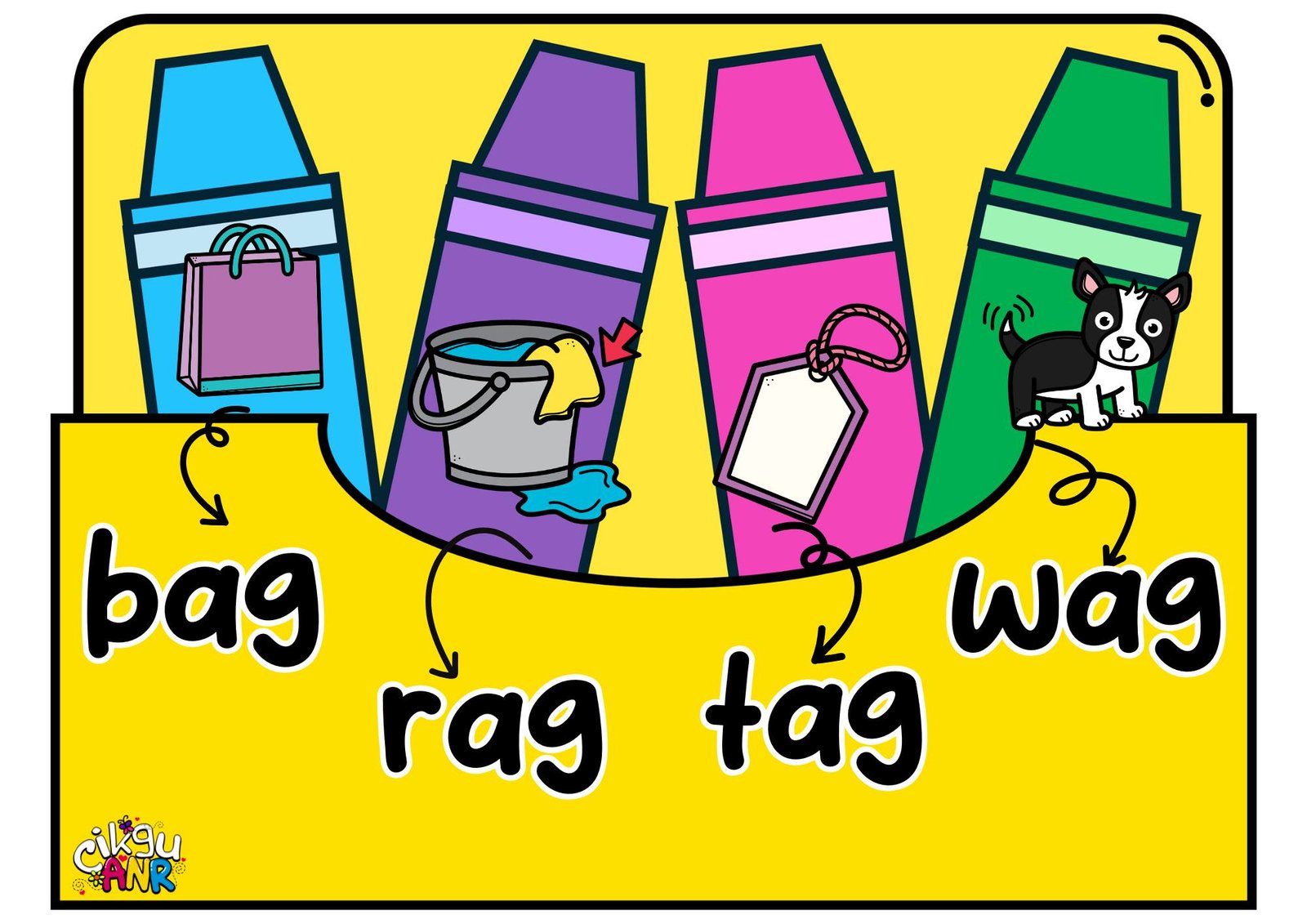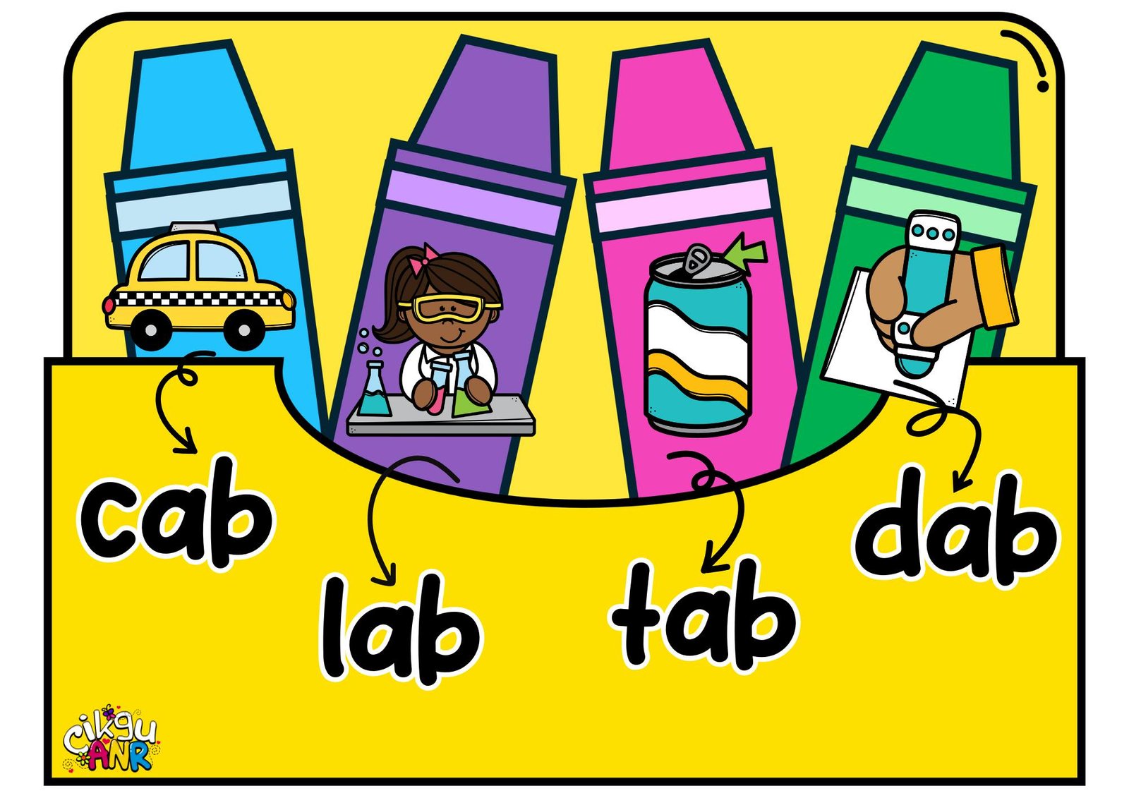 • Kad CVC seperti cab, lab, tab, dab bergambar