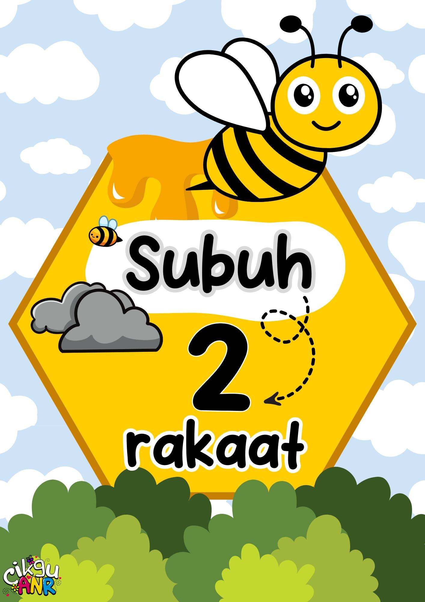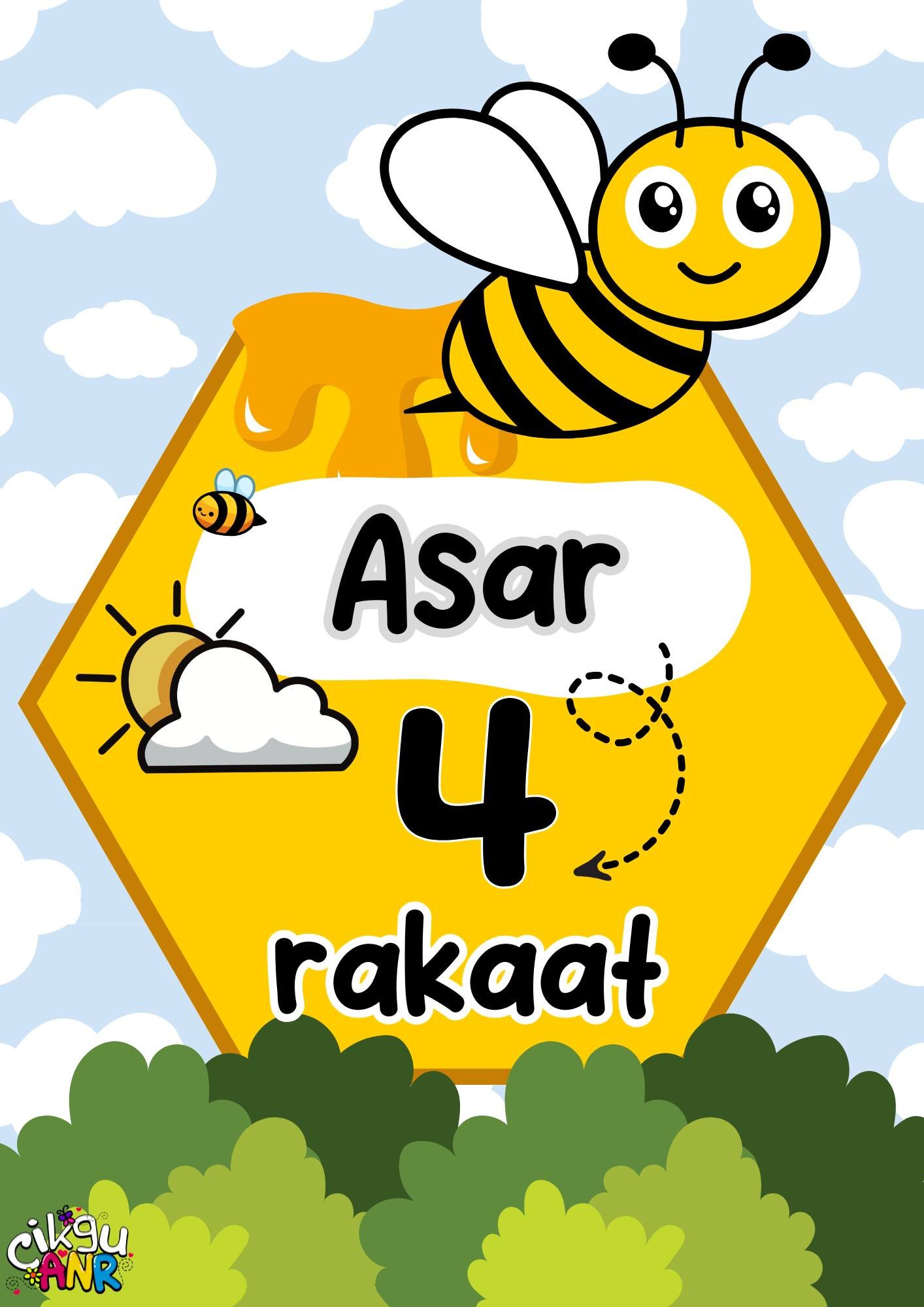 Contoh: Asar – 4 rakaat dengan ilustrasi lebah yang ceria 🐝