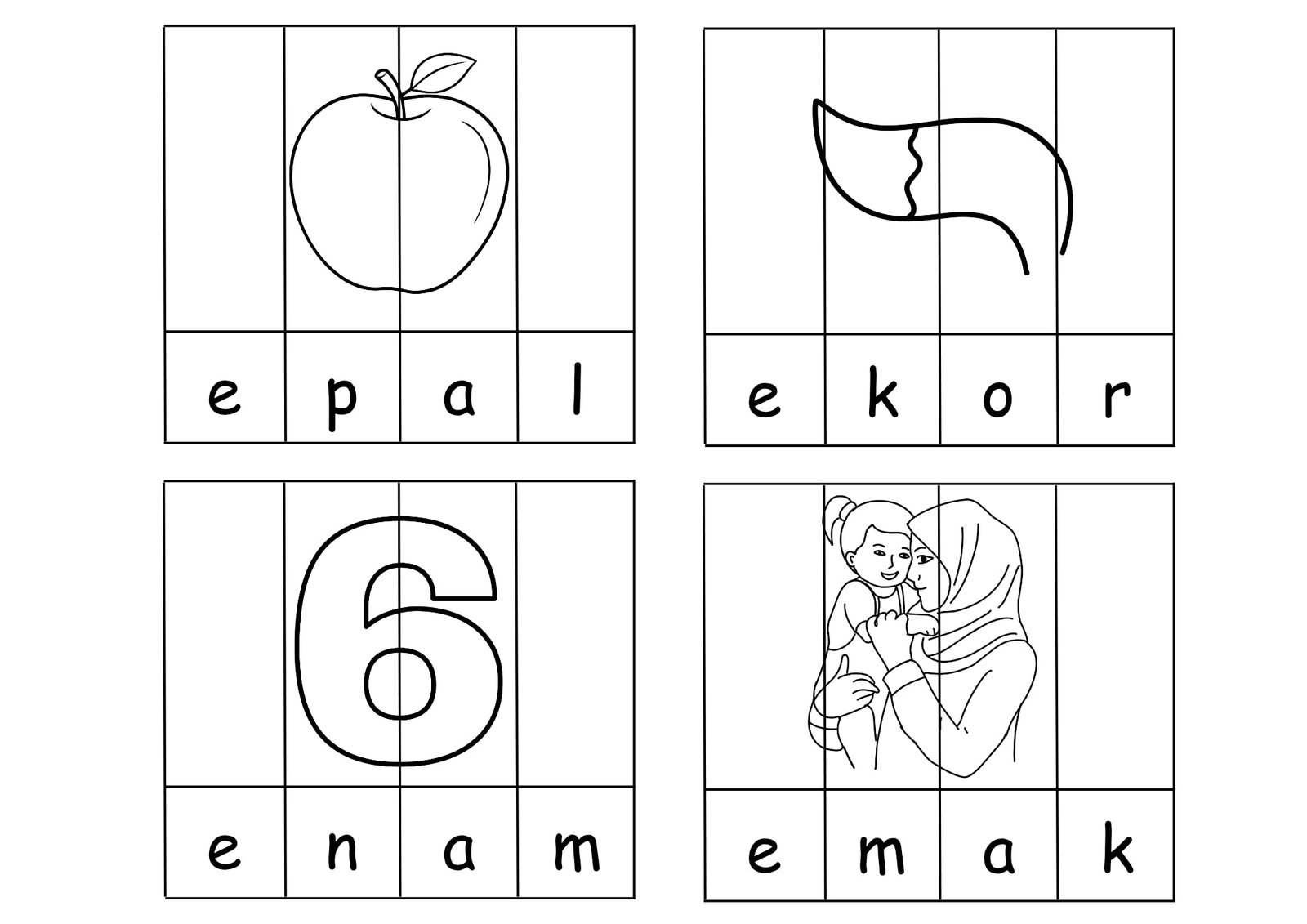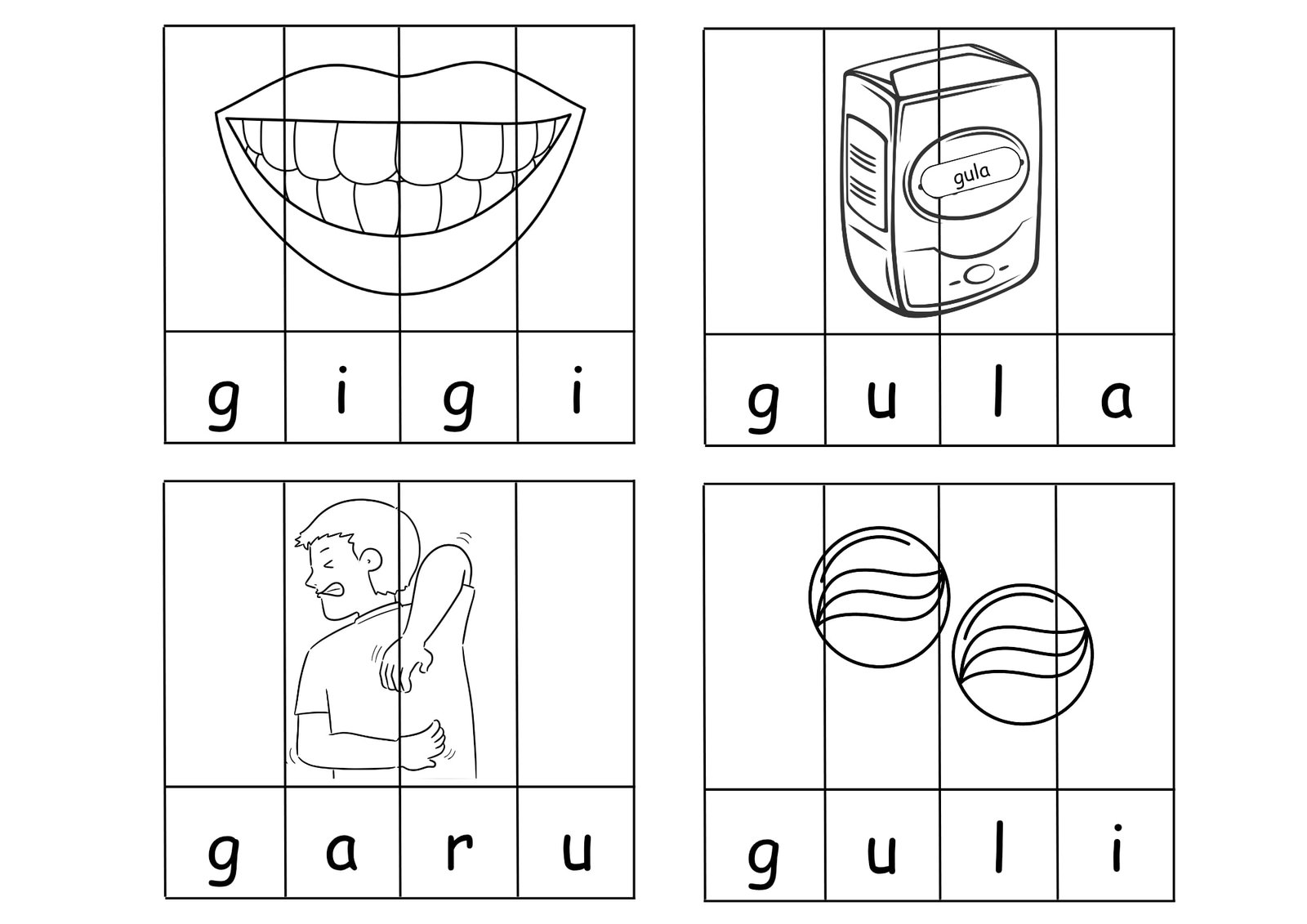 - Gunting setiap bahagian puzzle mengikut garisan yang tersedia.