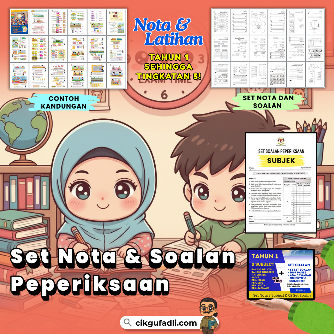 Set Nota & Soalan Peperiksaan ini bukan sekadar latihan, tetapi alat untuk anak kekal yakin dan menjawab soalan dengan tepat.