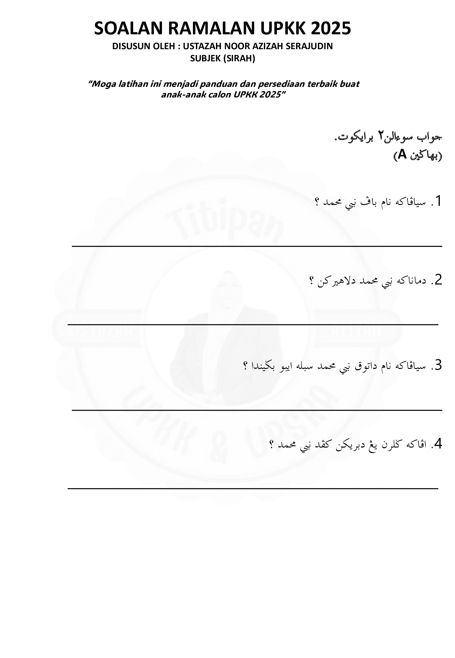 🕌 Bahan Soalan Ramalan UPKK 2025 Sirah (Percuma)