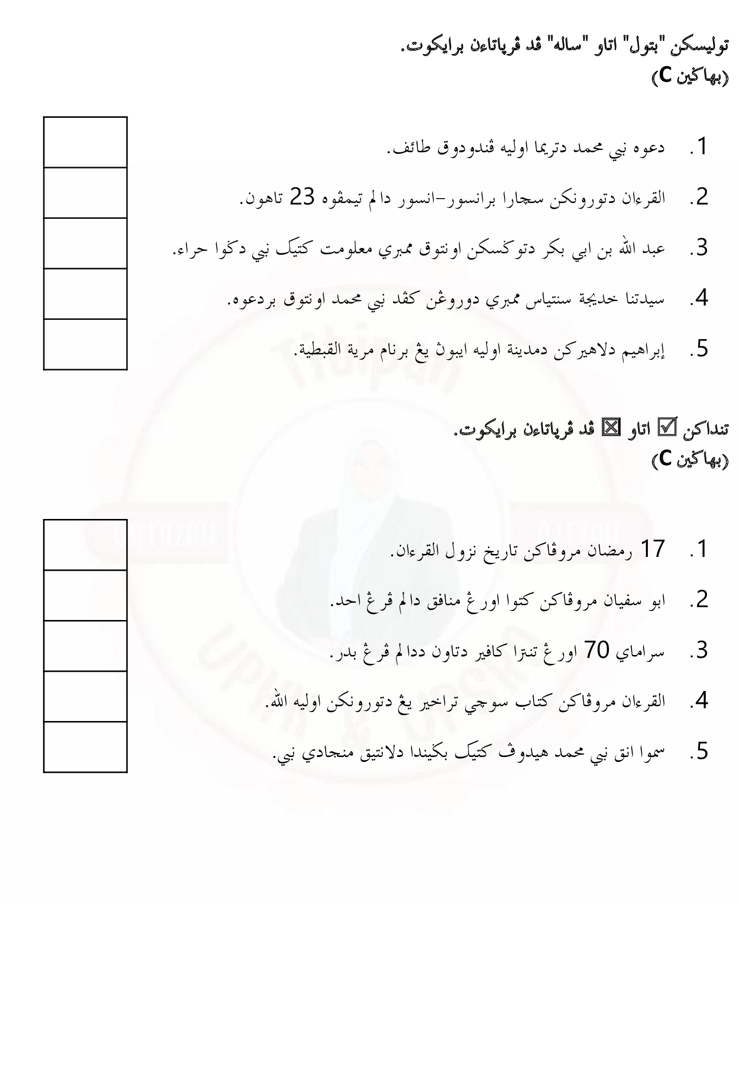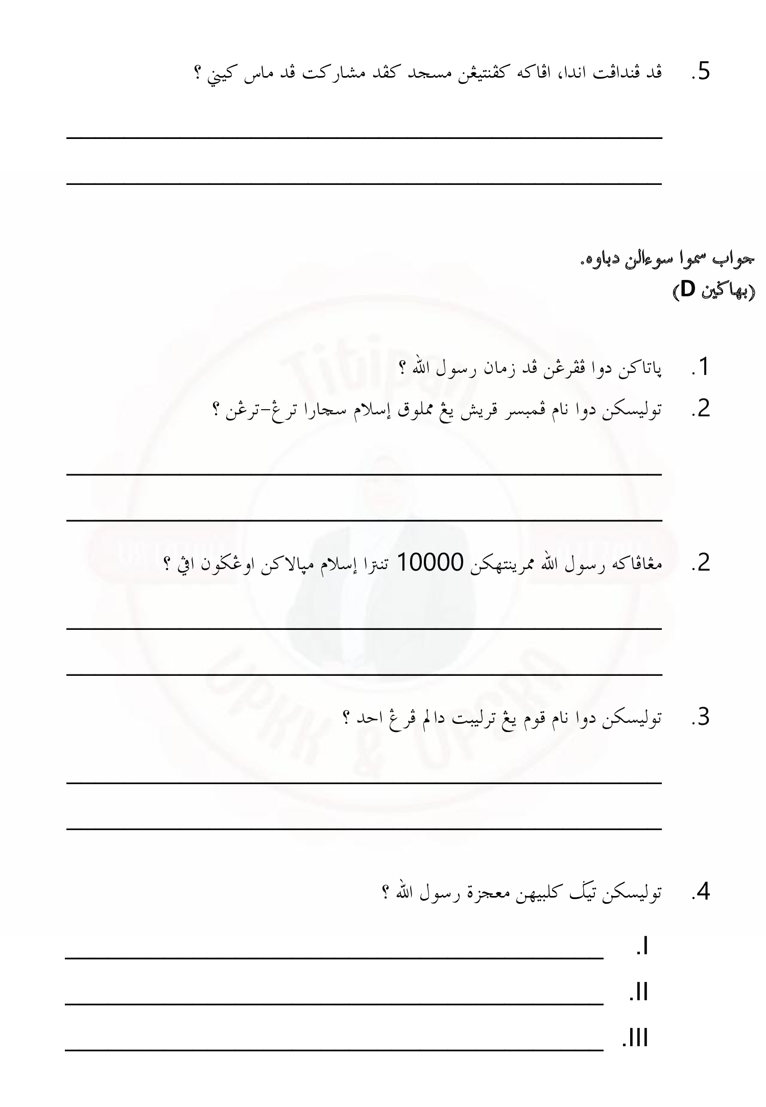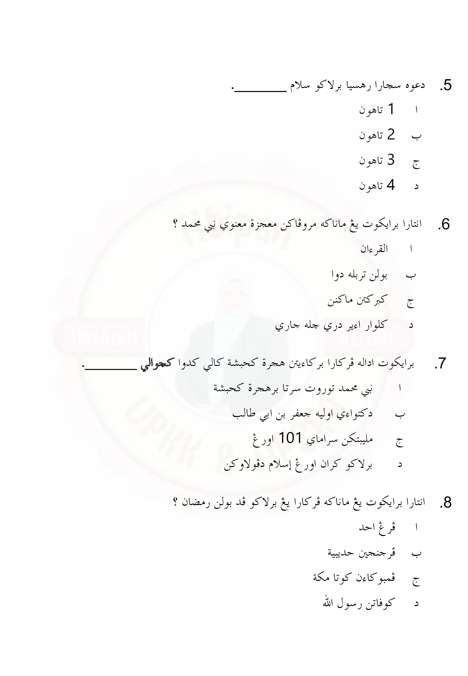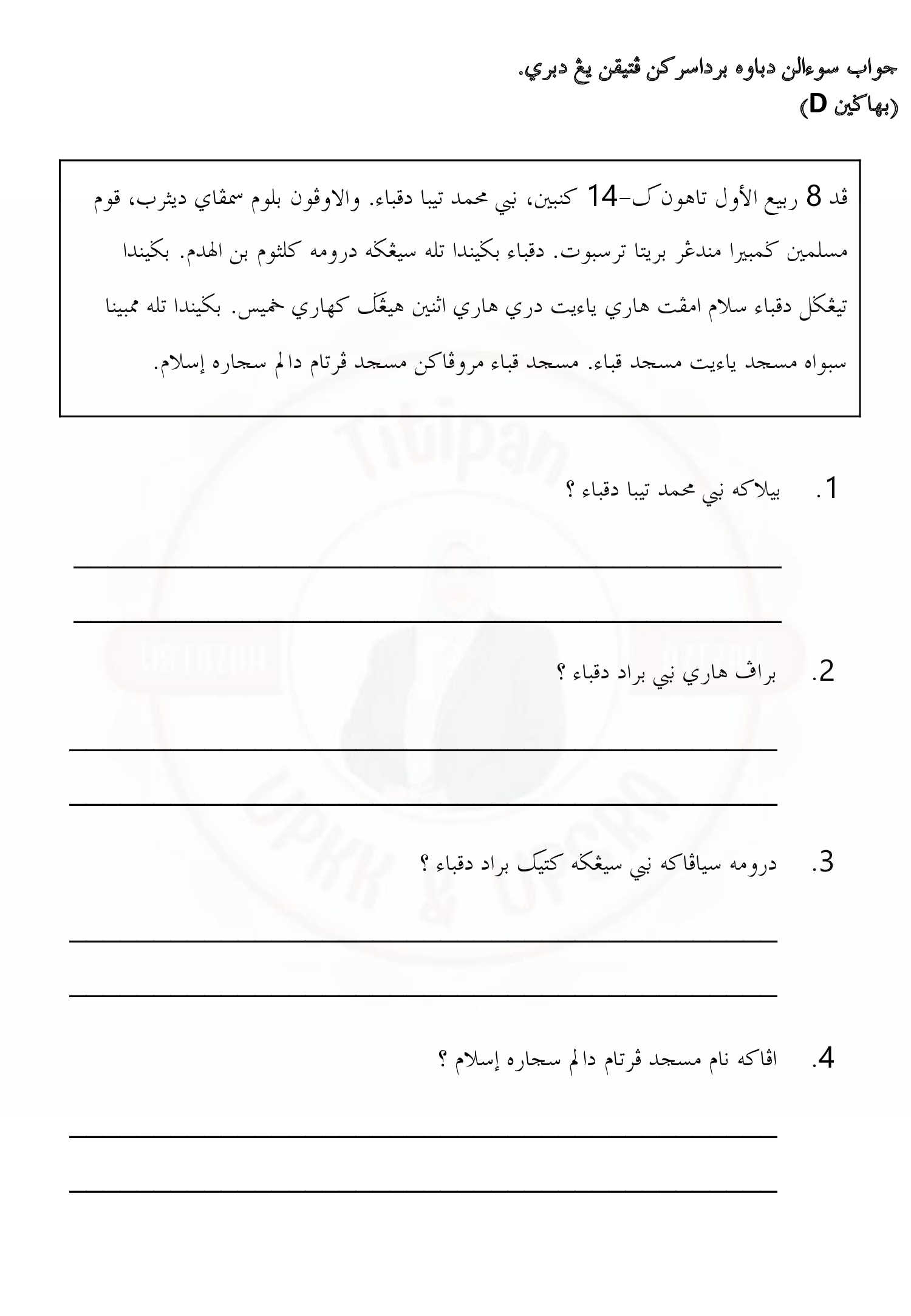 | 8 | Pelajarilah perjalanan Hijrah – Soalan kefahaman berdasarkan teks Jawi. |