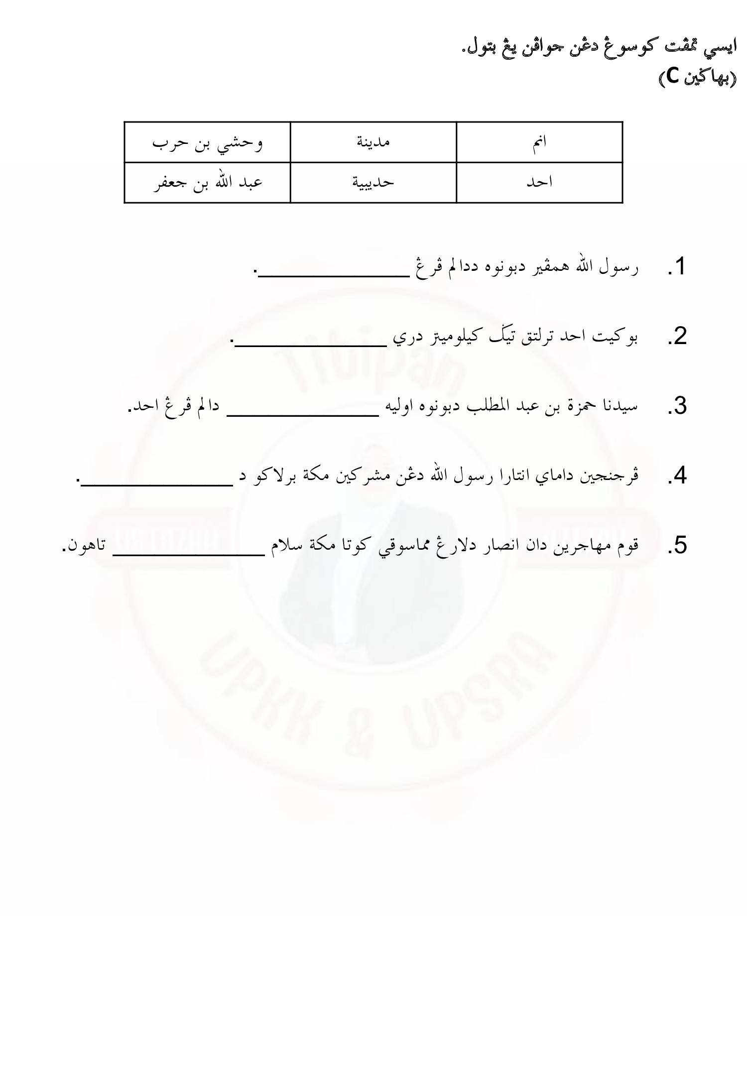 | 6 | Isi setiap ruang kosong dengan ilmu – Bahagian isikan tempat kosong (Perang, Hudaibiah, dll). |